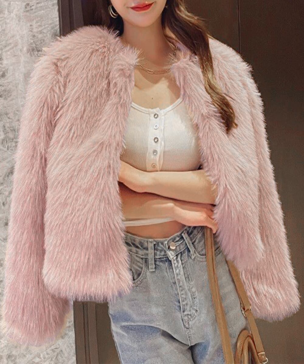 寒い季節のおしゃれを存分に楽しめる、エレガントで温かなノーカラーエコファーコート
