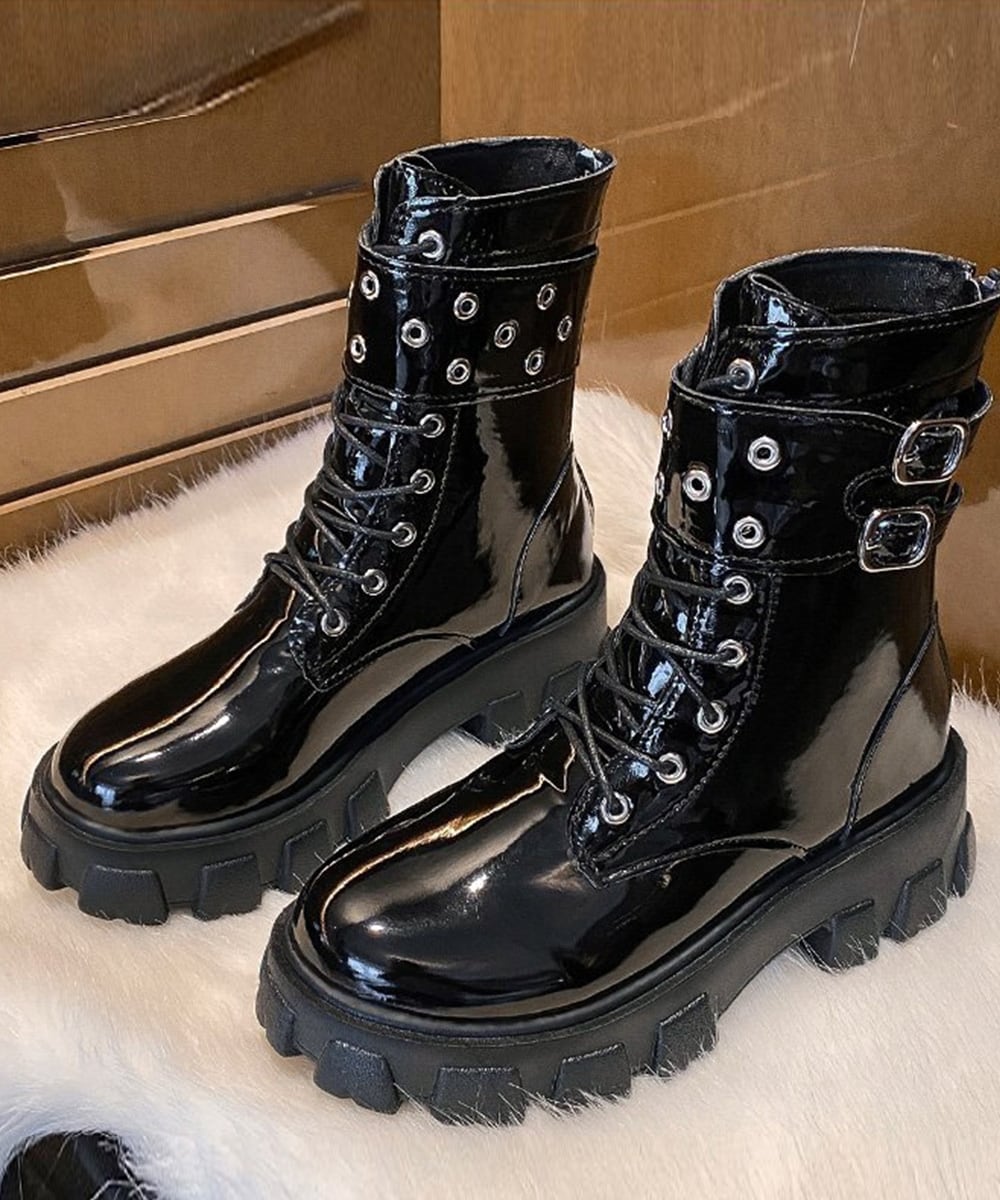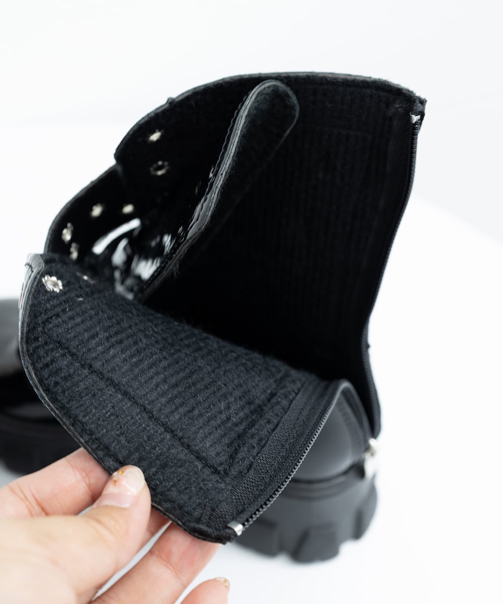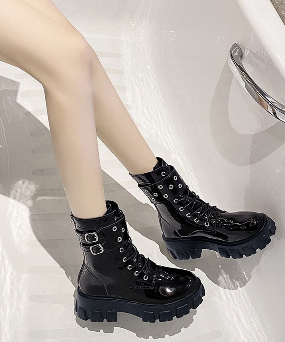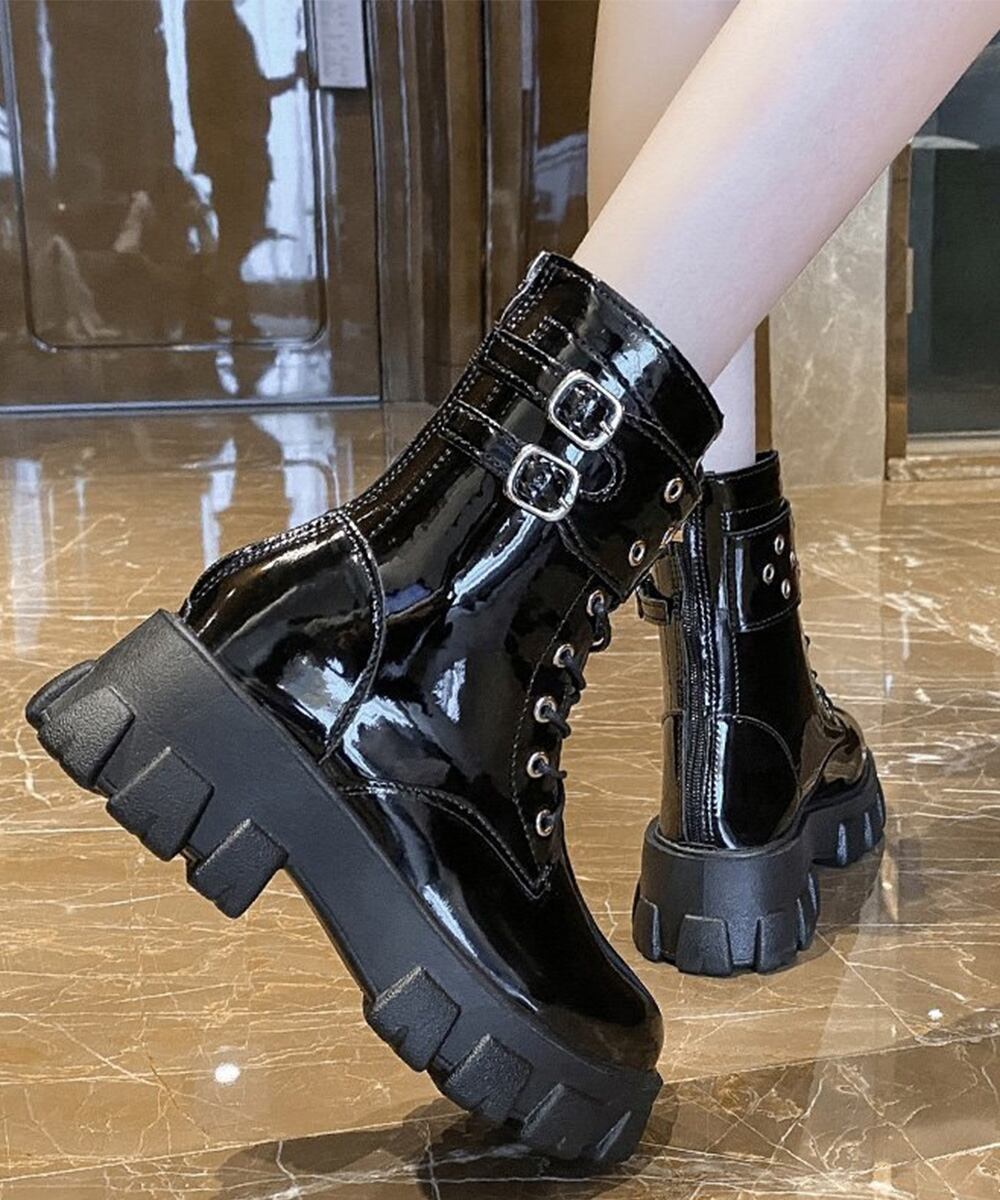厚底ショートブーツ 黒ストームブーツ美脚