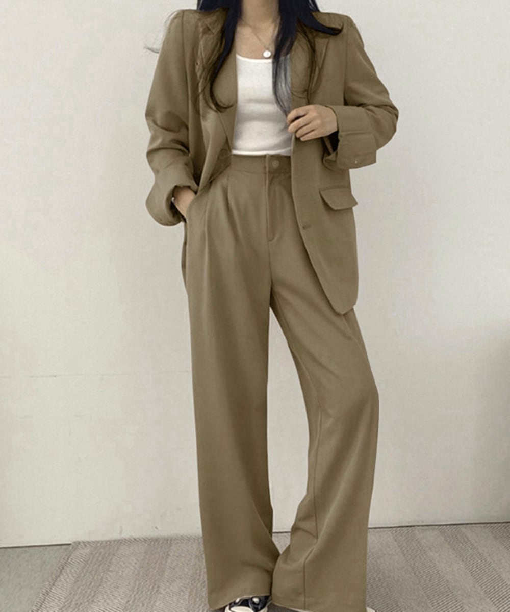 スーツワイドパンツ 上下セット セミワイドパンツ ゆったりシルエット 服 おしゃれボトムス オフィス 30代40代50代
