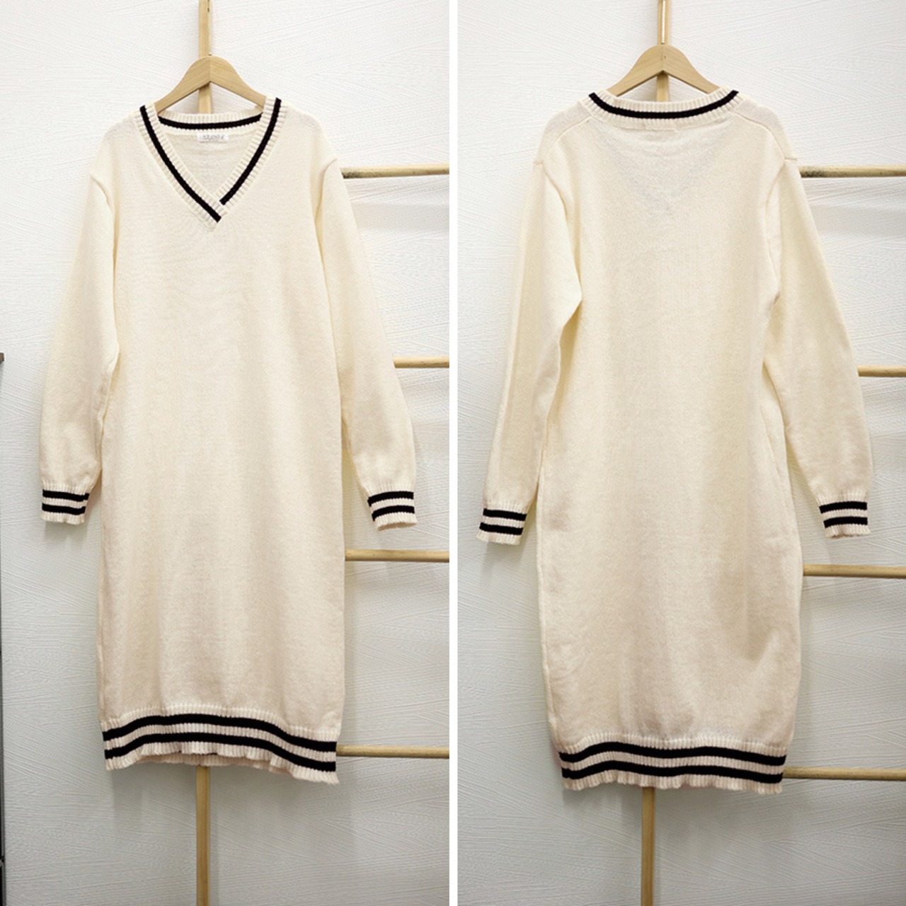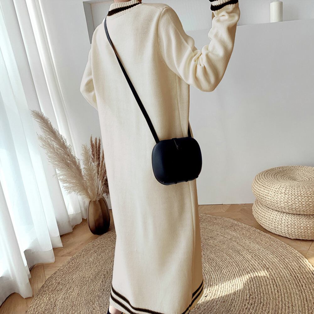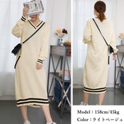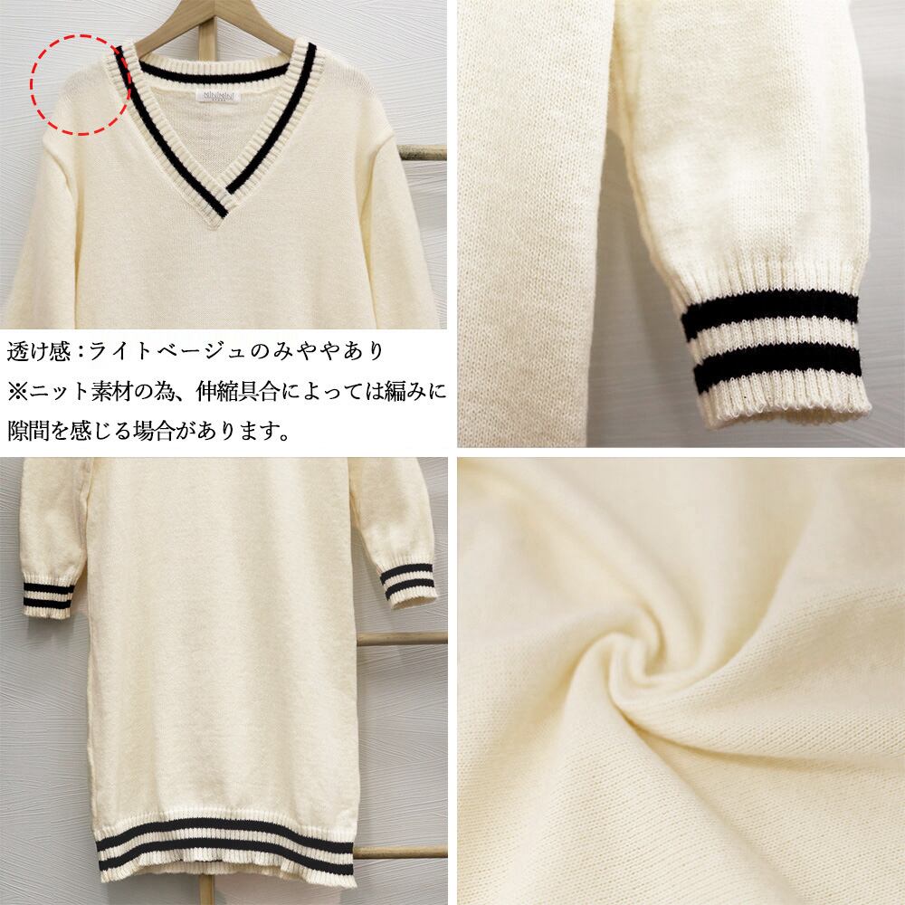 フラットシューズやブーツと合わせて、リラックス感たっぷりに素材:ポリエステル75%+アクリル25%カラー:ブラック/ライトベージュサイズ:ワンサイズ総丈:約107cm 肩幅:約44cm 袖丈:約60cm ゆき:約82cm 身幅:約54cm 胸囲:約108-140cm ウエスト:約108-140cm ヒップ:約108-140cm裏地:なし伸縮性:あり透け感:ライトベージュのみややあり※ニット素材の為、伸縮具合によっては編みに隙間を感じる場合があります。