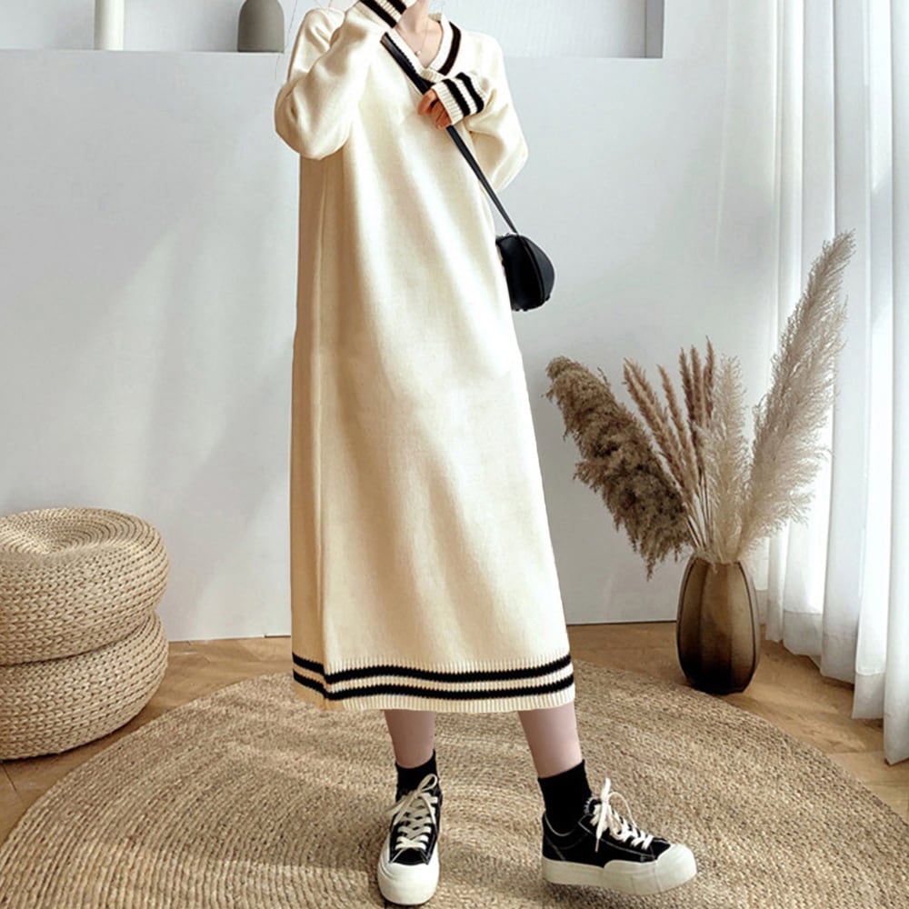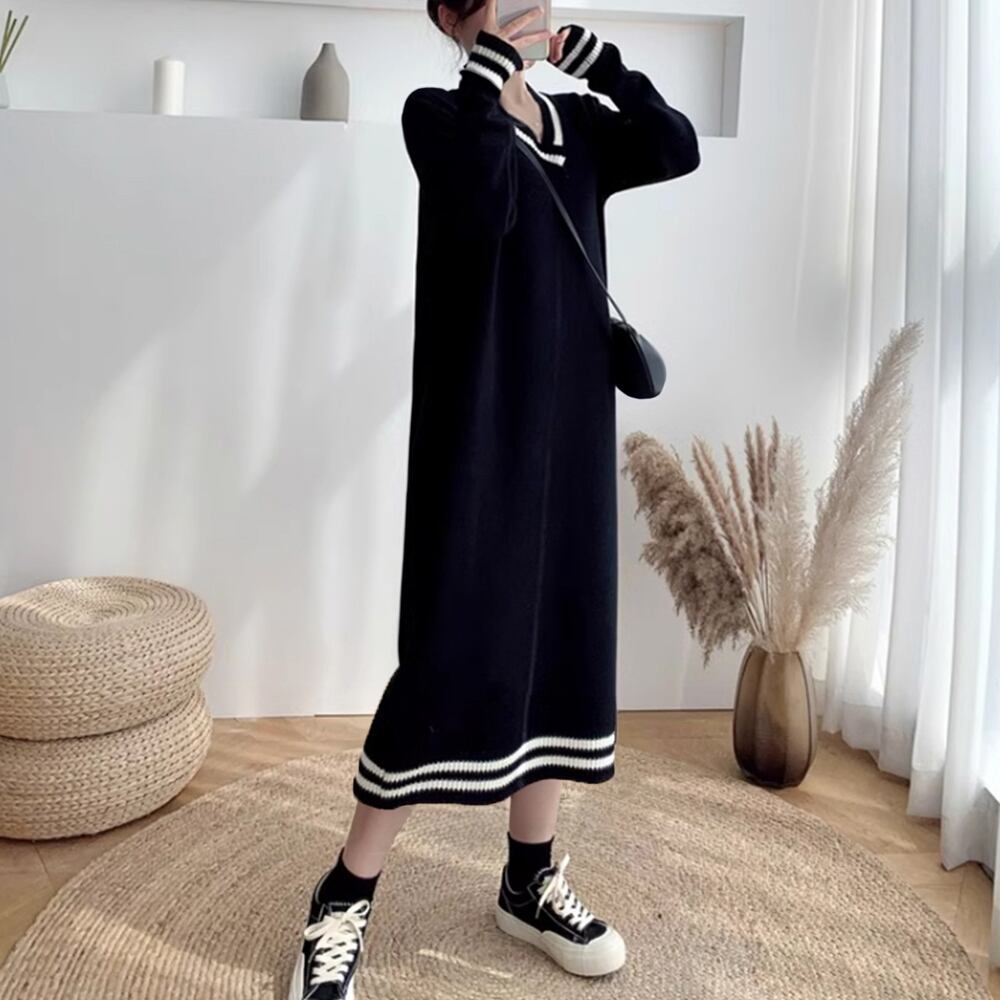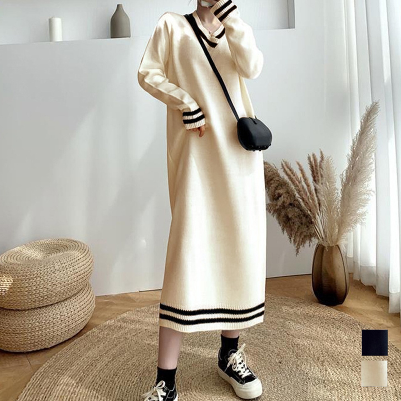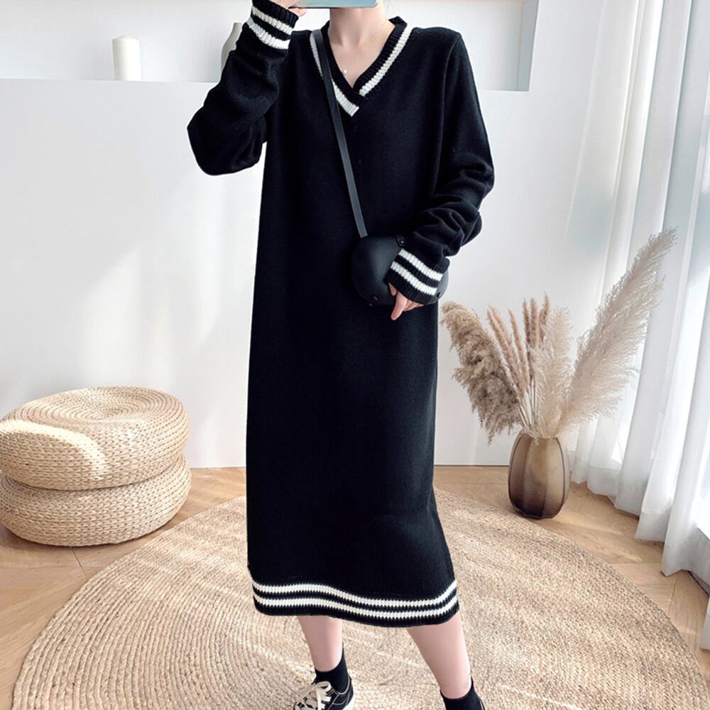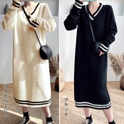 Vネック ワンピース おしゃれ 長袖ワンピース 体型カバー 着やせ きれいめカジュアル ゆったり Iラインワンピース韓国マタニティワンピ冬 大人可愛い 着回し 20代30代ニット柔らかいニット生地が、ストンとした縦長Iラインシルエットを演出するニットロングワンピースゆったりのシルエットが、体型を美しくカバーシンプルなデザインで、日常のスタイリングが楽になります。
