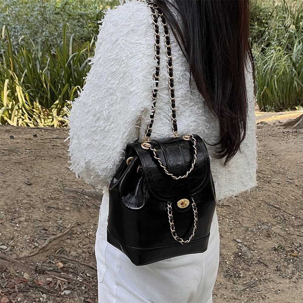 コンパクトリュック おしゃれ ミニショルダーバッグ PUレザーミニリュック 巾着バッグ オフィスカジュアル 肩掛けカバンリュック 通勤通学 大人きれいめバッグ リュックサック合皮チェーンショルダーがトレンド感満載で大人可愛いフェイクレザー素材のミニリュック巾着のようにキュッと絞れ、中身が零れ落ちる心配はなく開け閉めも簡単楽ちんコンパクトサイズながらも荷物がしっかり収納ミニサイズだからこそできるおしゃれな持ち方もあるので、是非試してほしい素材:合成皮革+ポリエステルカラー:ブラック/オフホワイト/オフホワイト*ブラック/シルバー/ワインレッドサイズ:高さ:約21cm 底横幅:約17cm マチ:約11.5cm 持ち手高さ:約9cm(調節不可、取り外し不可) ショルダー:約87cm(調節不可、取り外し不可)重さ:約380g裏地:あり内ポケット:あり生産国:中国※すべて平置きサイズです(採寸方法違いより、多少の誤差がございますので、ご了承ください)。