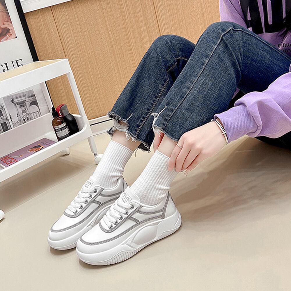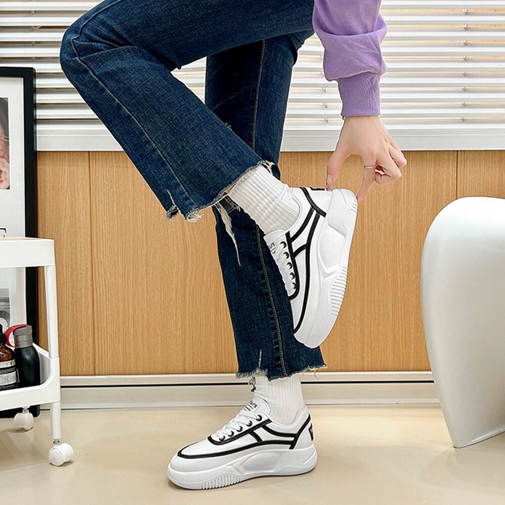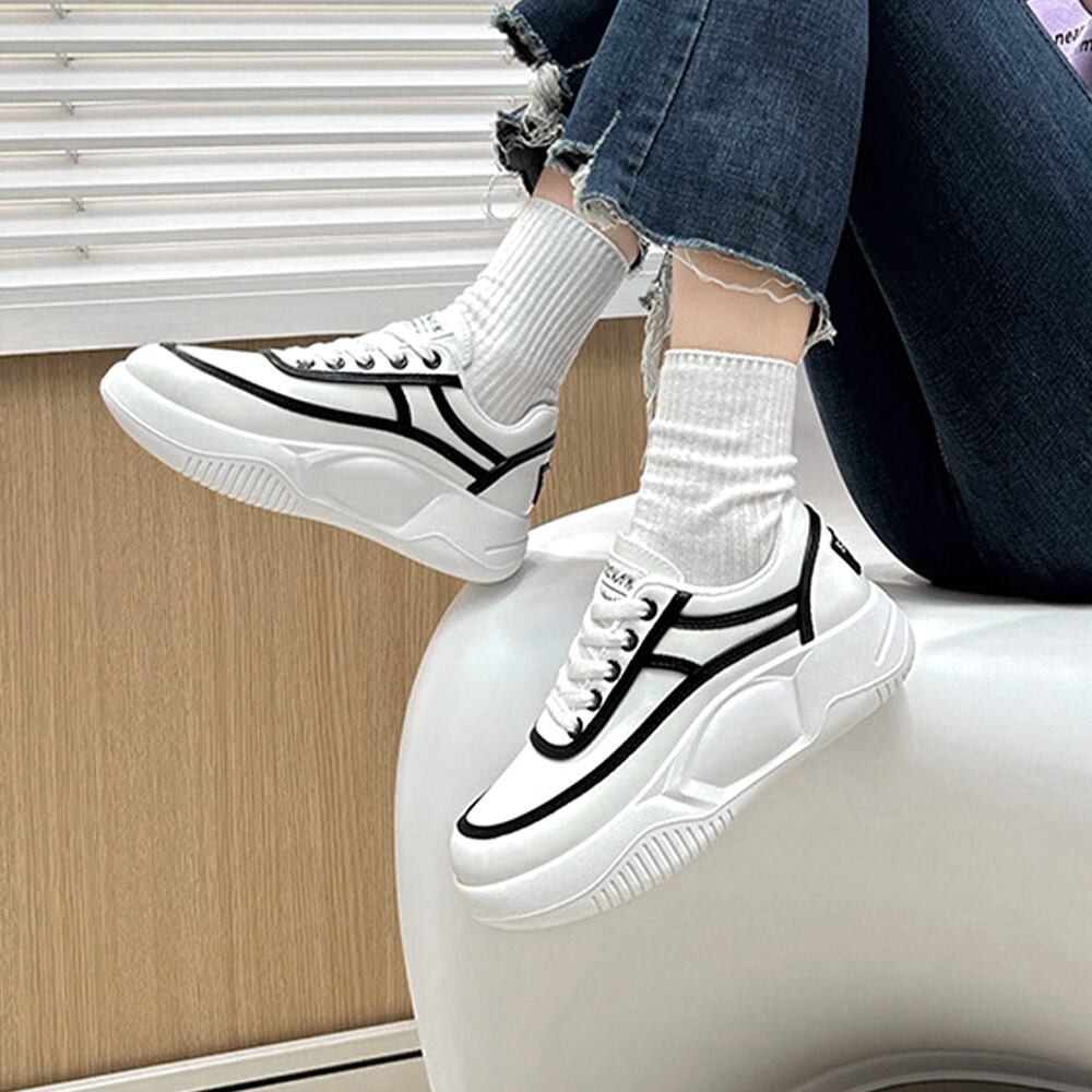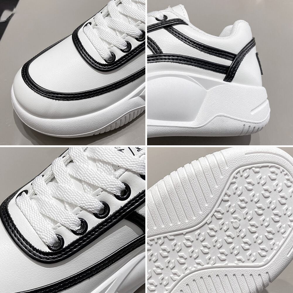 レースアップ ローカットスニーカー 白 通勤通学靴 歩きやすい おしゃれ 美脚脚長 カジュアルシューズ ダッドスニーカー低身長さんシューズ 厚底ソール靴楽ちん 20代30代40代ごついけどお洒落、低身長さんでもスタイルアップ確実の韓国新作DESIGNのレースアップスニーカー足指に圧迫のないラウンドトゥ、地面からの衝撃を吸収し足裏への負担を軽減するインソール、特殊の模様があって滑りにくくしてくれる靴底洋服に馴染みやすいので普段使いはもちろん、長時間履いても快適で通勤通学、お出掛けや旅行、ナースさんや介護業界の方にもおすすめの1足甲素材:合成皮革底素材:合成底カラー:ブラック*ホワイト/グレー*ホワイトサイズ:22.5cm(35)/23.0cm(36)/23.5cm(37)/24.0cm(38)/24.5cm(39)※少し小さめの作りなので、普段よりワンサイズアップをおススメ致します。