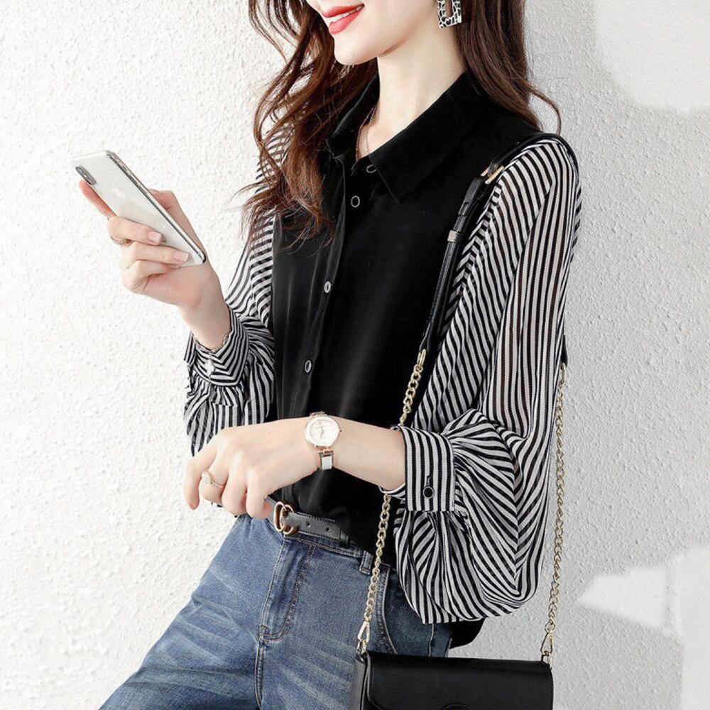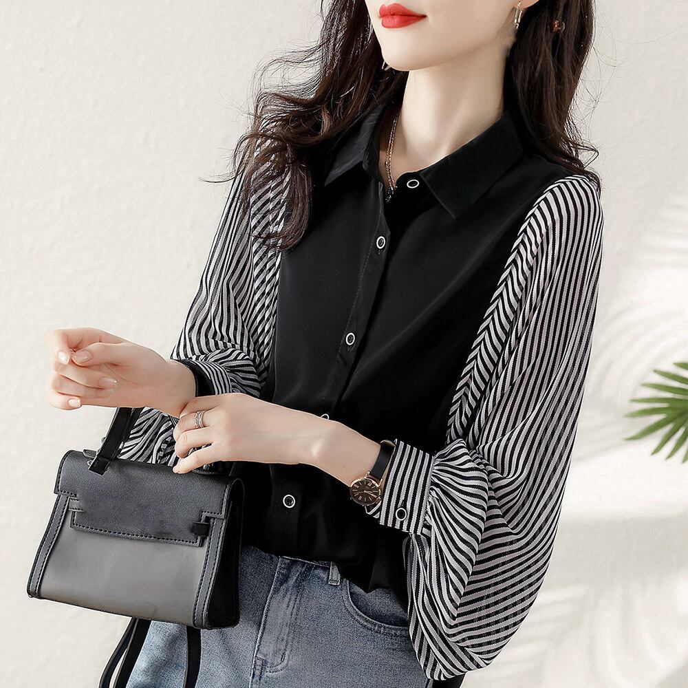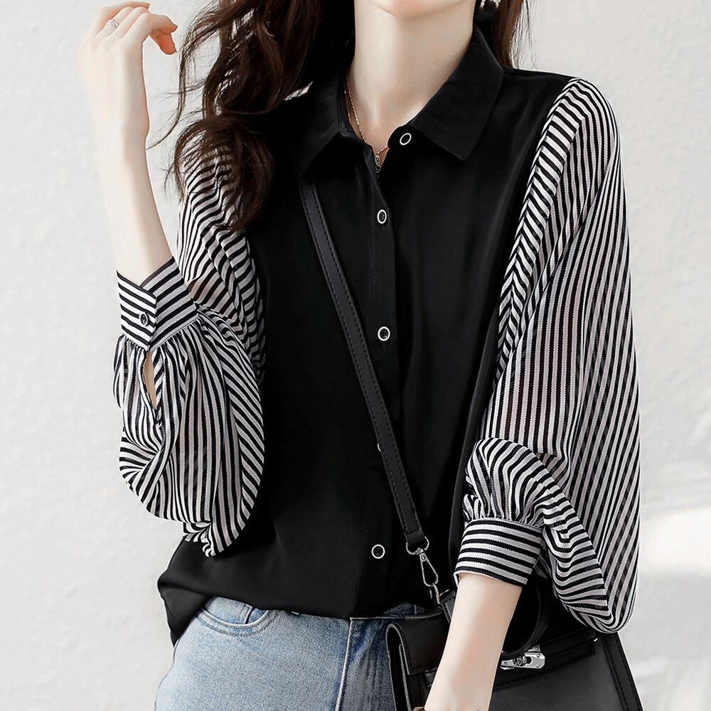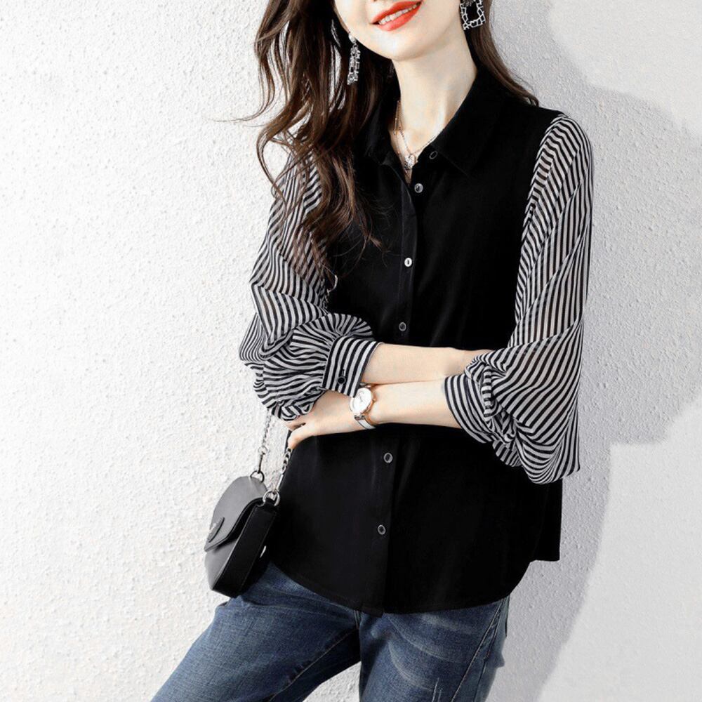 ゆったり ストライプ柄 ブラウス 袖切り替え オフィスカジュアル トップス 大人女性 おしゃれ ブラウス着やせ 通勤大人韓国ファッション ブラウス体型カバー オフィス ブラウス大人女性にふさわしい品格とおしゃれを兼ね備えた長袖ブラウスストライプ柄のランタンスリーブがアクセントとなり、腕周りを華奢に見せるオフィスカジュアルだけでなく、デートやカフェでのカジュアルなシーンにもピッタリ素材:ポリエステル100%カラー:ブラックサイズ:M/L/XL/XXL[M]着丈:前丈約64cm/後ろ丈約68cm 肩幅:約34cm 袖丈:約57cm ゆき:約74cm 身幅:約52cm 胸囲:約104cm[L]着丈:前丈約65cm/後ろ丈約69cm 肩幅:約35cm 袖丈:約58cm ゆき:約75.5cm 身幅:約54cm 胸囲:約108cm[XL]着丈:前丈約65cm/後ろ丈約70cm 肩幅:約36cm 袖丈:約59cm ゆき:約77cm 身幅:約56cm 胸囲:約112cm[XXL]着丈:前丈約66cm/後ろ丈約71cm 肩幅:約37cm 袖丈:約60cm ゆき:約78.5cm 身幅:約58cm 胸囲:約116cm裏地:なし伸縮性:なし透け感:袖のみややあり生産国:中国※すべて平置きサイズです(採寸方法違いより、多少の誤差がございますので、ご了承ください)。