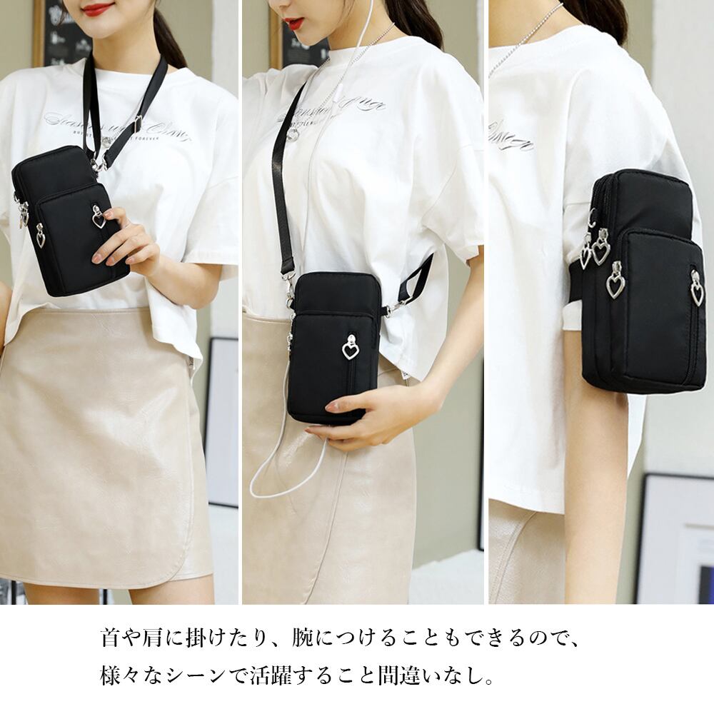 レディース スマホポーチ 携帯ショルダー 小さめ 斜めがけバッグ 可愛い サブバッグ 韓国 コンパクトバッグ縦型 可愛いポーチ ウォレット ミニバッグおしゃれ お財布ショルダー黒小さめなサイズ感がとても可愛いスマホポシェット首や肩に掛けたり、腕につけることもできるので、様々なシーンで活躍すること間違いなしコンパクトなサイズながら、携帯電話や財布、キーケースなど、日常生活で必要なものをしっかり収納できる素材:ナイロン+ポリエステルカラー:ブラック/ベージュ/ネイビー/薄ピンク/スカイブルー/ホットピンク/グリーン/パープル/ダークパープルサイズ:高さ:約20cm 底横幅:約10.3cm マチ:約4cm ショルダー:約72-133cm(調節可能、取り外し可能)重さ:約110g裏地:あり内ポケット:なし生産国:中国※すべて平置きサイズです(採寸方法違いより、多少の誤差がございますので、ご了承ください)。