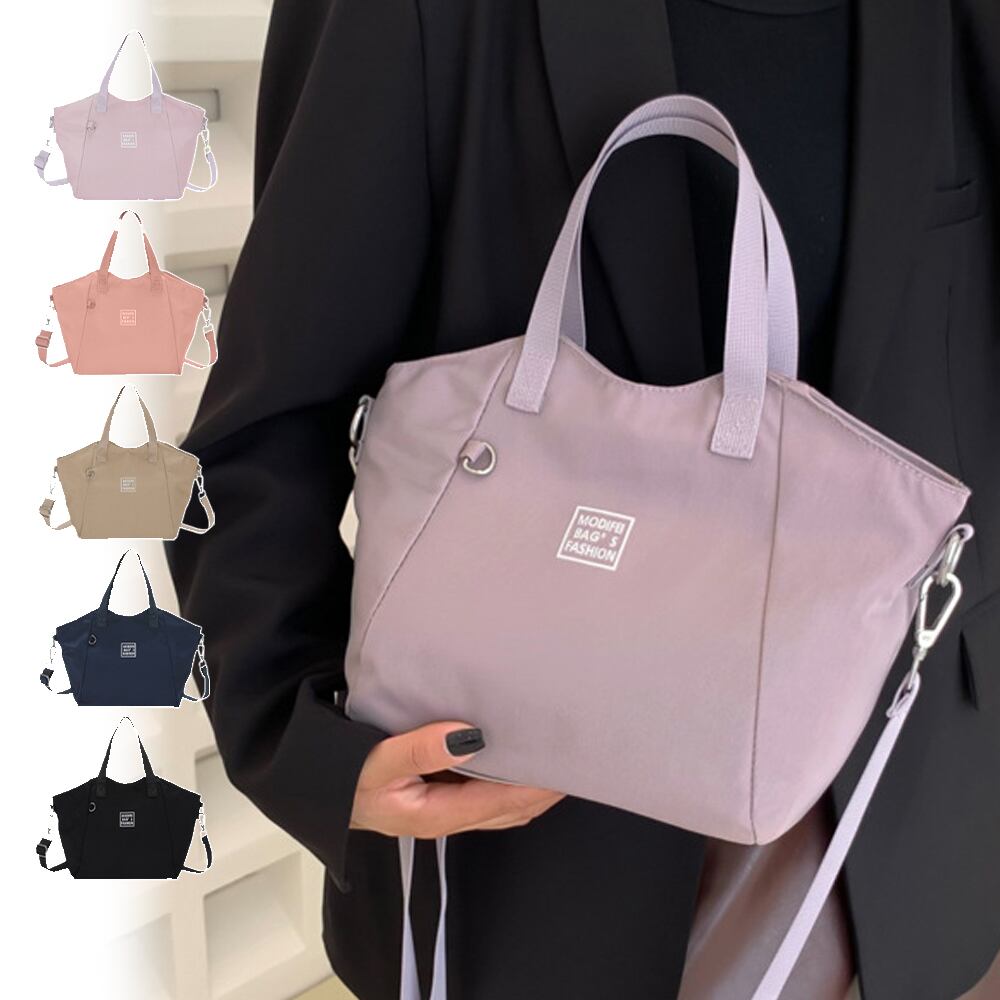 レディース ショルダーバッグ ミニトートバッグ マザーズバッグ 斜めかけ ファスナー 英字ロゴ シンプル カジュアル通勤通学バッグ 大容量バッグ 手持ちバッグ不規則な台形フォルムに、フロントの英字ロゴがアクセント。