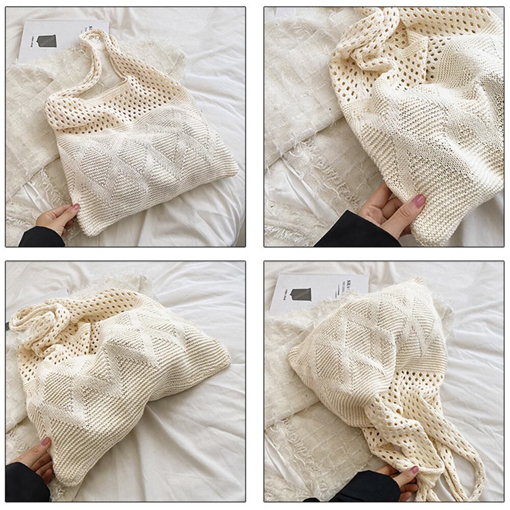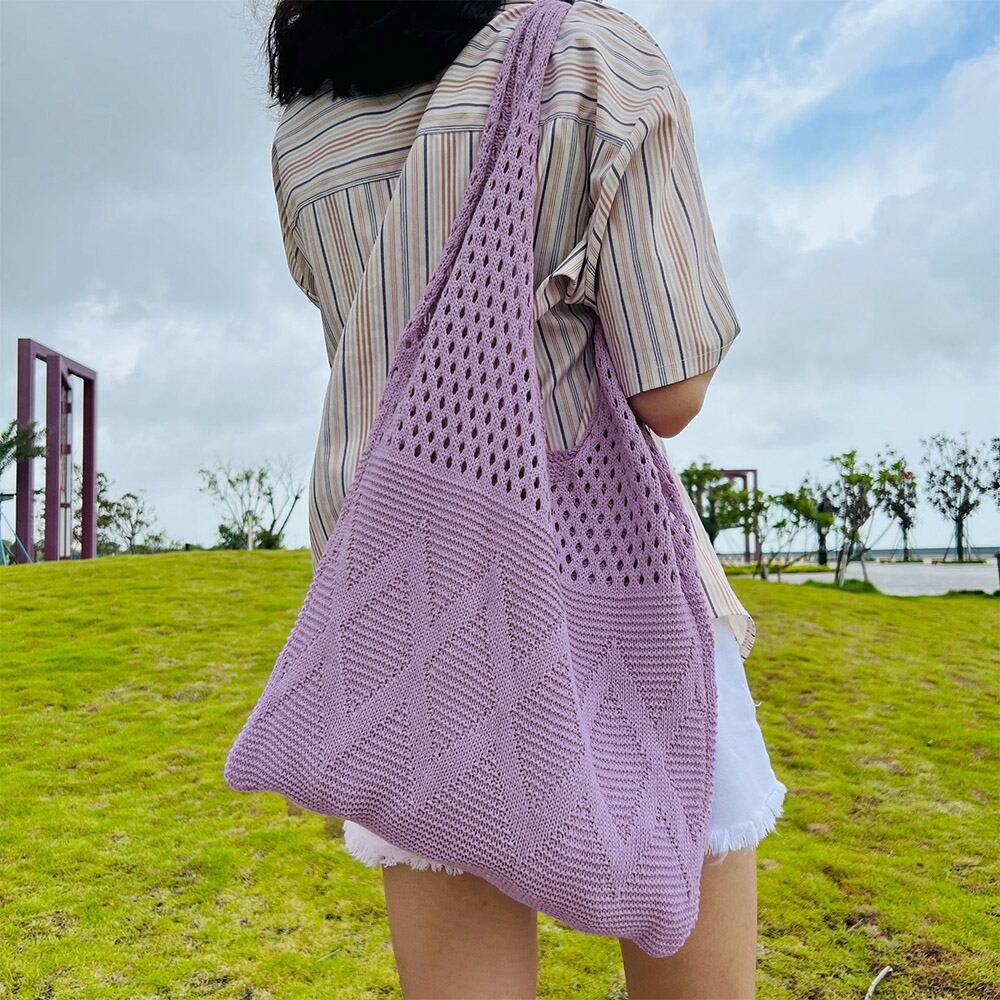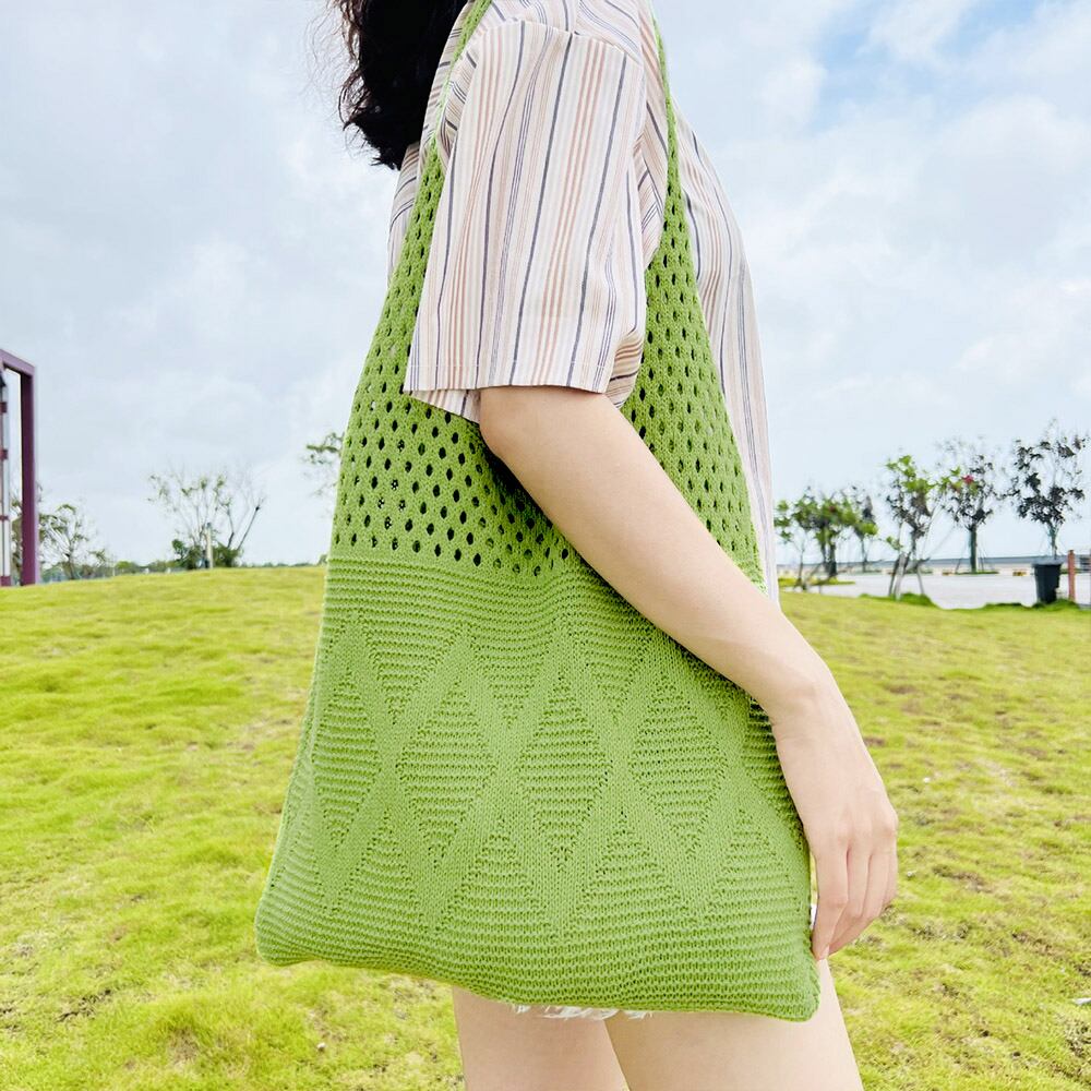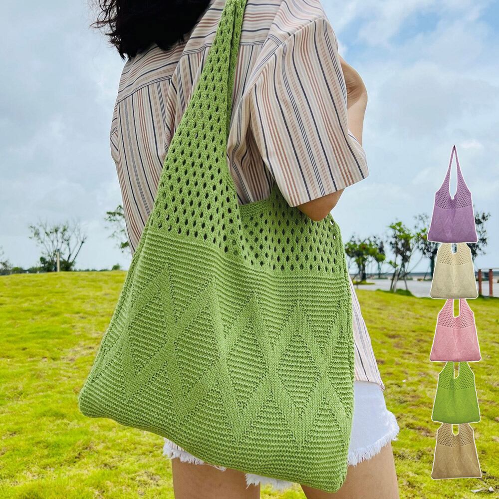 ワンショルダーバッグ レディース 透かし編み ニット鞄 軽量 肩掛けカバン 大きめ カジュアル バッグ 大容量 きれいめオルチャン バッグ a4バッグ通勤軽い おしゃれサブバッグマルチの網目が遊び心満載でモダンな今っぽ編み込みスクエア型ニットバッグマチの無いデザインながらも伸びるので、荷物を入れると膨らんで柔らかいシルエットになり可愛く女性らしいバッグとして使うのはもちろん、差し色アイテムとしていつものコーデに取り入れるだけでおしゃれ感&トレンド感がプラスされる素材:ポリエステルカラー:アイボリー/ベージュ/ラベンダー/ピンク/グリーンサイズ:高さ:約36cm 底横幅:約39cm 持ち手高さ:約23cm(調節不可、取り外し不可)重さ:約173g裏地:なし内ポケット:なし生産国:中国※すべて平置きサイズです(採寸方法違いより、多少の誤差がございますので、ご了承ください)。