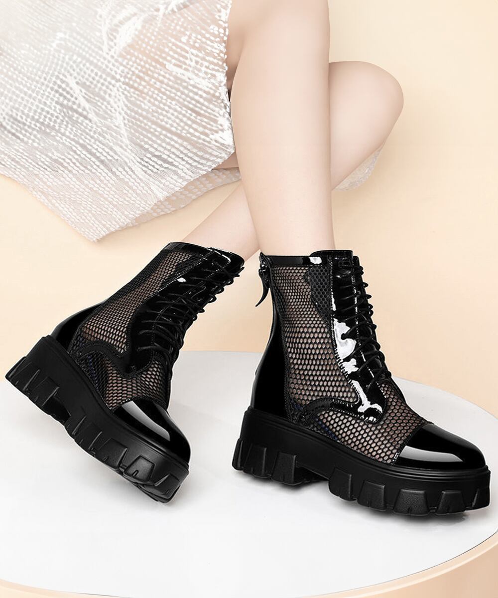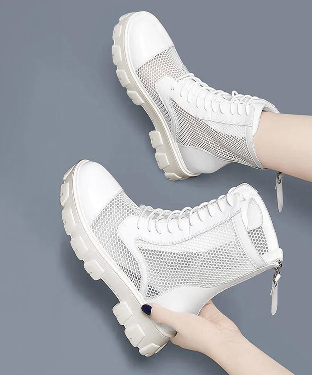 美脚 ショートブーツ 歩きやすい シアーブーツ 蒸れない サマーブーツ 痛くない レースアップシューズ バックファスナーシースルーブーティ 疲れない ブーツ夏 ミドルブーツ 韓国重くなりがちなトラックソールにシアー素材でフェミニンスタイルに大変身するシースルーブーツレースアップ仕様を加えてシンプルさにデザイン性を高め、バックファスナー着脱式によって履き脱ぎが簡単楽ちんになるスマートな1足厚底なので低身長さんでも脚長見せできてSTYLEUP、シンプルなカラー展開でどんなアイテムとも好相性甲素材:合成皮革+合成繊維底素材:合成底カラー:ブラック/オフホワイトサイズ:22.5cm(35)/23.0cm(36)/23.5cm(37)/24.0cm(38)/24.5cm(39)(カッコ内は靴底表記となります)[22.5]長さ:約22.5cm 幅:約10.0cm 筒丈:約14.5cm 履き口周り:約22.0cm[23.0]長さ:約23.0cm 幅:約10.2cm 筒丈:約14.5cm 履き口周り:約22.0cm[23.5]長さ:約23.5cm 幅:約10.4cm 筒丈:約14.5cm 履き口周り:約22.0cm[24.0]長さ:約24.0cm 幅:約10.6cm 筒丈:約14.5cm 履き口周り:約22.0cm[24.5]長さ:約24.5cm 幅:約10.8cm 筒丈:約14.5cm 履き口周り:約22.0cmヒール(全サイズ):約5.0cmストーム(全サイズ):約3.0cm重さ(両足):約784g-865g生産国:中国※すべて平置きサイズです(採寸方法違いより、多少の誤差がございますので、ご了承ください)。