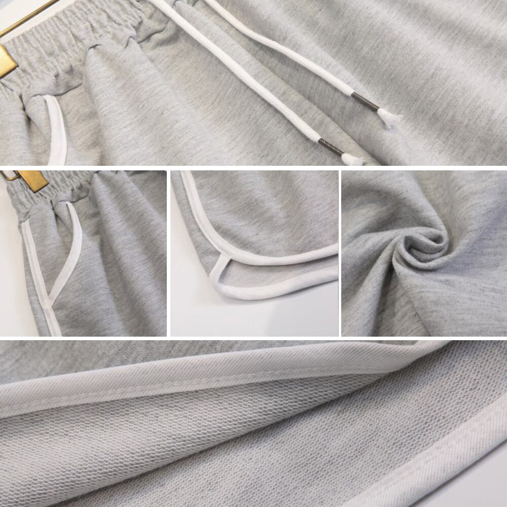 レディース ハイウエスト サイドラインカラーパンツ 夏ルームウェア カジュアルホットパンツ スウェットパンツフィットネスヨガパンツ 短パン 運動着スポーティー スポーツウエア美脚柔らかい生地で着心地が良いショートパンツ配色パイピングがスポーティーなデザインウエストゴムと調節紐、締め付けなくて体によりフィット感アップリラックスしたいおうち時間にはもちろん、フィットネス・ジョギング・ウォーキング、海、ビーチ様々なアウトドアにも大活躍♪素材:綿65%+ポリエステル35%カラー:ブラック/ホワイト/ダークグレー/ライトグレー/ネイビー/ピンク/レッドサイズ:ワンサイズ着丈:約30cm 股下:約5.5cm ウエスト(ゴム仕様):約58-104cm ヒップ:約110cm もも周り:約64cm裏地:なし伸縮性:なし透け感:淡色のみややあり生産国:中国※すべて平置きサイズです(採寸方法違いより、多少の誤差がございますので、ご了承ください)。