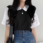 レディース 襟付きトップス バイカラーカットソー 切り替えtシャツ 韓国プルオーバー大人カジュアル 体型カバー 夏服配色半袖カットソー通学 オフィスカジュアル 重ね着風Tシャツ夏1枚で簡単におしゃれがかなう、レイヤード風デザインのリブ半袖tシャツボリューム袖で大人の可愛さをプラスし、気になる二の腕もカバーボトムの印象に合わせてキレイめからカジュアルまで、幅広く着回し可能素材:ポリエステル100%カラー:ブラック/ベージュ/ブルーサイズ:ワンサイズ着丈:約57cm 肩幅:約38cm 袖丈:約26cm ゆき:約45cm 身幅:約58cm 胸囲:約116-136cm裏地:なし伸縮性:身頃部分あり透け感:袖部分のみややあり生産国:中国※すべて平置きサイズです(採寸方法違いより、多少の誤差がございますので、ご了承ください)。