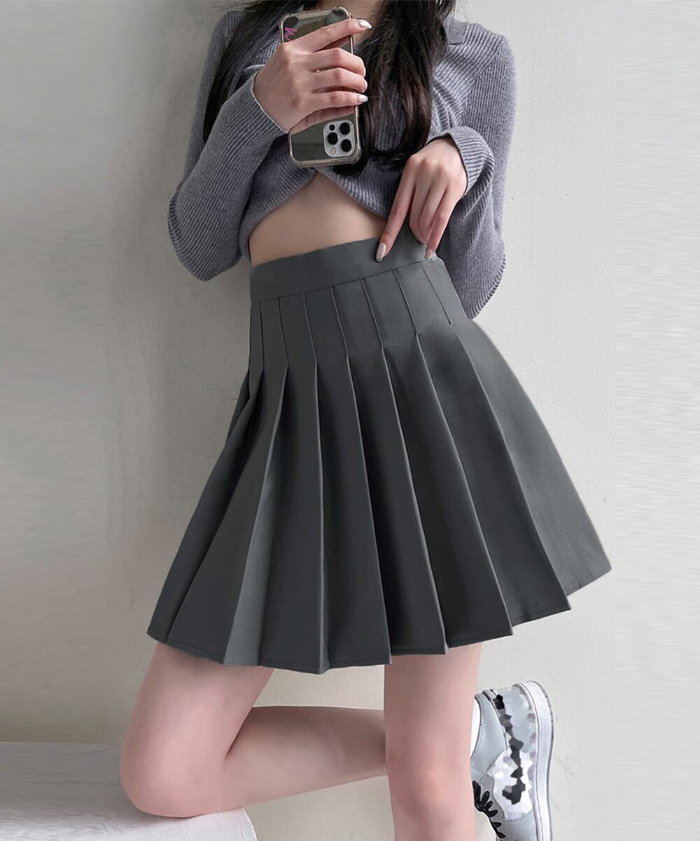 フレアスカート通学 膝上丈スカート韓国 テニススカート美脚