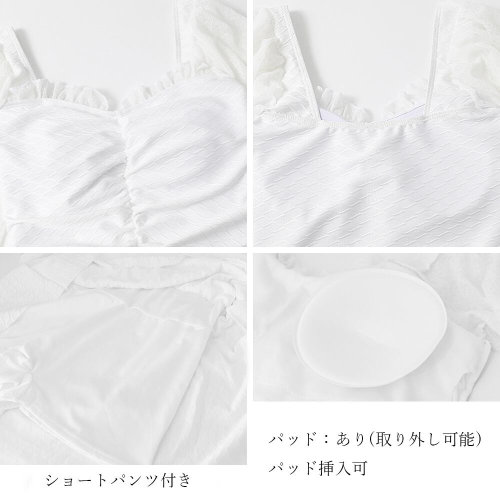 オフショル水着 レディース 一体型ショートパンツ付き 海水浴 フリル 袖シースルーオールインワン スイムウェア プールギャザーお洒落長袖 韓国露出少なめ水着 大人可愛いリゾート体型カバーできるエレガントな韓国風袖シースルーワンピ水着肩出しのオフショルも楽しめる2WAYタイプ華やかレース袖でお洒落に二の腕カバー&日焼け対策も露出控えめがうれしい、お洋服みたいに着られて、ママにもぴったりな水着素材:ポリエステル85%+ポリウレタン15%カラー:ホワイトサイズ:ワンサイズ着丈:約73cm 袖丈:約53cm トップバスト約70-94cm ウエスト:約62-90cm ヒップ:約76-110cm もも周り:約48-66cm商品詳細:・パッド:あり(取り外し可能)・パッド挿入可・ワイヤー:なし裏地:なし伸縮性:あり透け感:袖部分のみあり生産国:中国※すべて平置きサイズです(採寸方法違いより、多少の誤差がございますので、ご了承ください)。