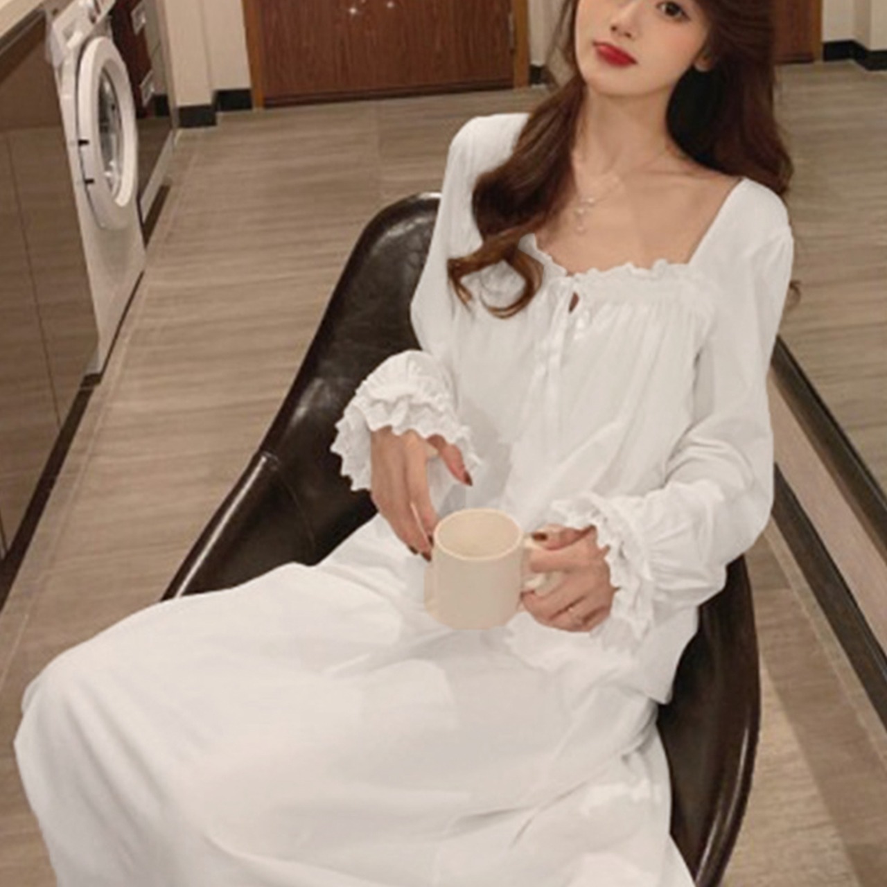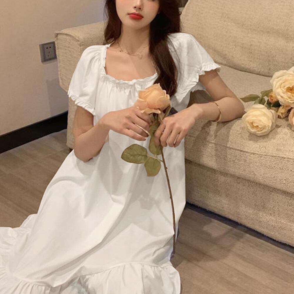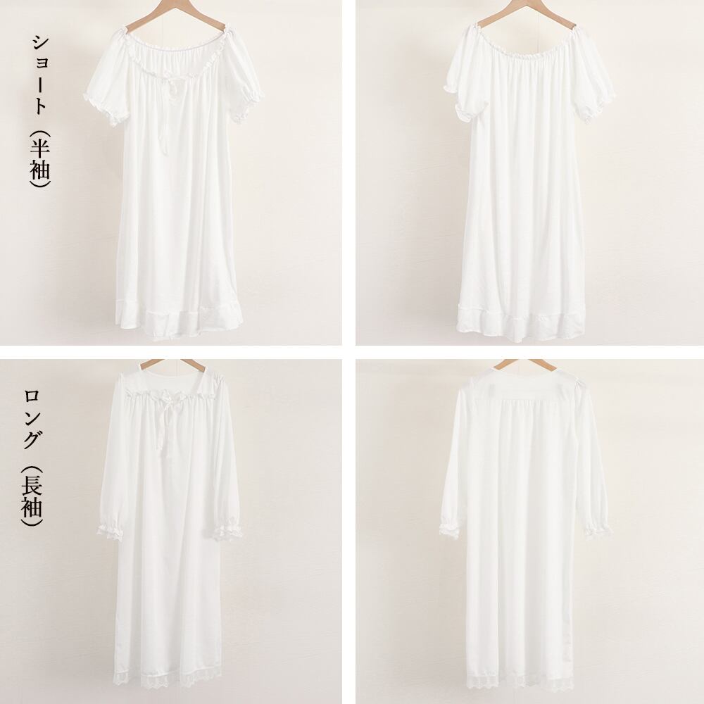 可愛い リラックス ルームウェア 半袖ワンピース 部屋着 可愛いフリル袖 ゆったり ナイトウェア 涼しい 選べる2タイプラウンジウェア長袖 寝間着ワンピ 韓国 ホームウェア楽ちんリラックスした雰囲気を演出しながらも、女性らしさを忘れないデザインが魅力的なパジャマワンピースです袖口と裾にフリルがあしらわれ、かわいらしい印象を与えますスクエアネックのデザインもポイントで、デコルテラインを綺麗に見せてくれますショート丈とロング丈から選べるため、季節やお好みに合わせて選んでいただけます素材:ポリエステル100%タイプ:ロング(長袖)/ショ−ト(半袖)カラー:ホワイトサイズ:ワンサイズロング(長袖)総丈:約110cm 肩幅:約38cm 袖丈:約55cm ゆき:約73cm 身幅:約60cm 胸囲:約120-142cm ウエスト:約122-144cm ヒップ:約122-144cmショ−ト(半袖)総丈:約88cm ゆき:約38cm 身幅:約56cm 胸囲:約112-160cm ウエスト:約124-172cm ヒップ:約124-172cm裏地:なし伸縮性:あり透け感:ややあり生産国:中国※すべて平置きサイズです(採寸方法違いより、多少の誤差がございますので、ご了承ください)。