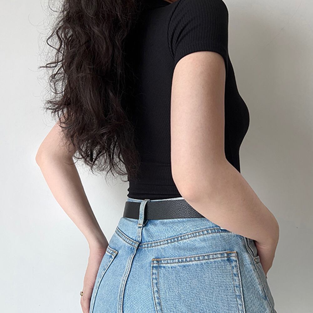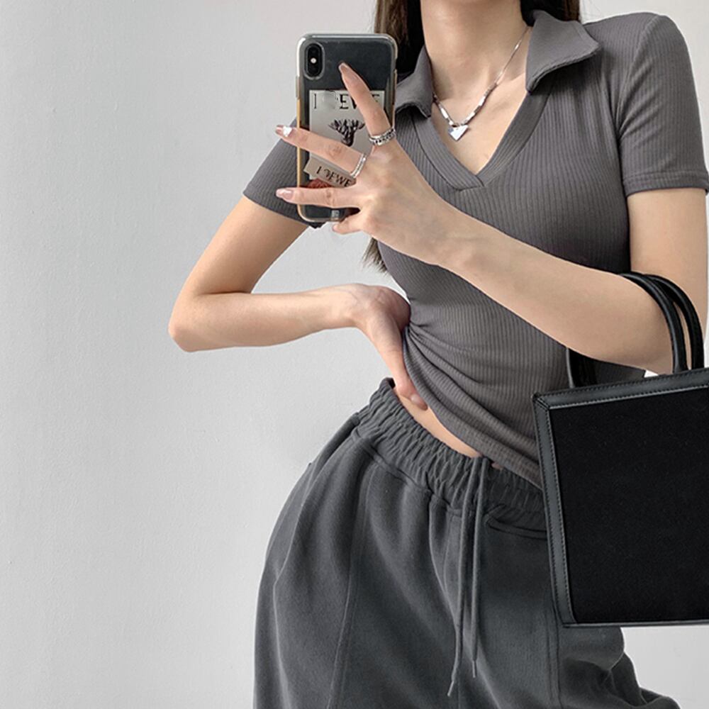 韓国 半袖 スリムフィットTシャツ 細見え ショート丈トップス 着やせ カジュアル無地tシャツ ストリート ダンス衣装黒細身トップスお洒落 タイトTシャツヨガ 半袖カットソー春大人カジュアルコーデに欠かせないポロカットソー小さめな衿とコンパクトなシルエットが、ミニマルなスタイルをかえるひと品。