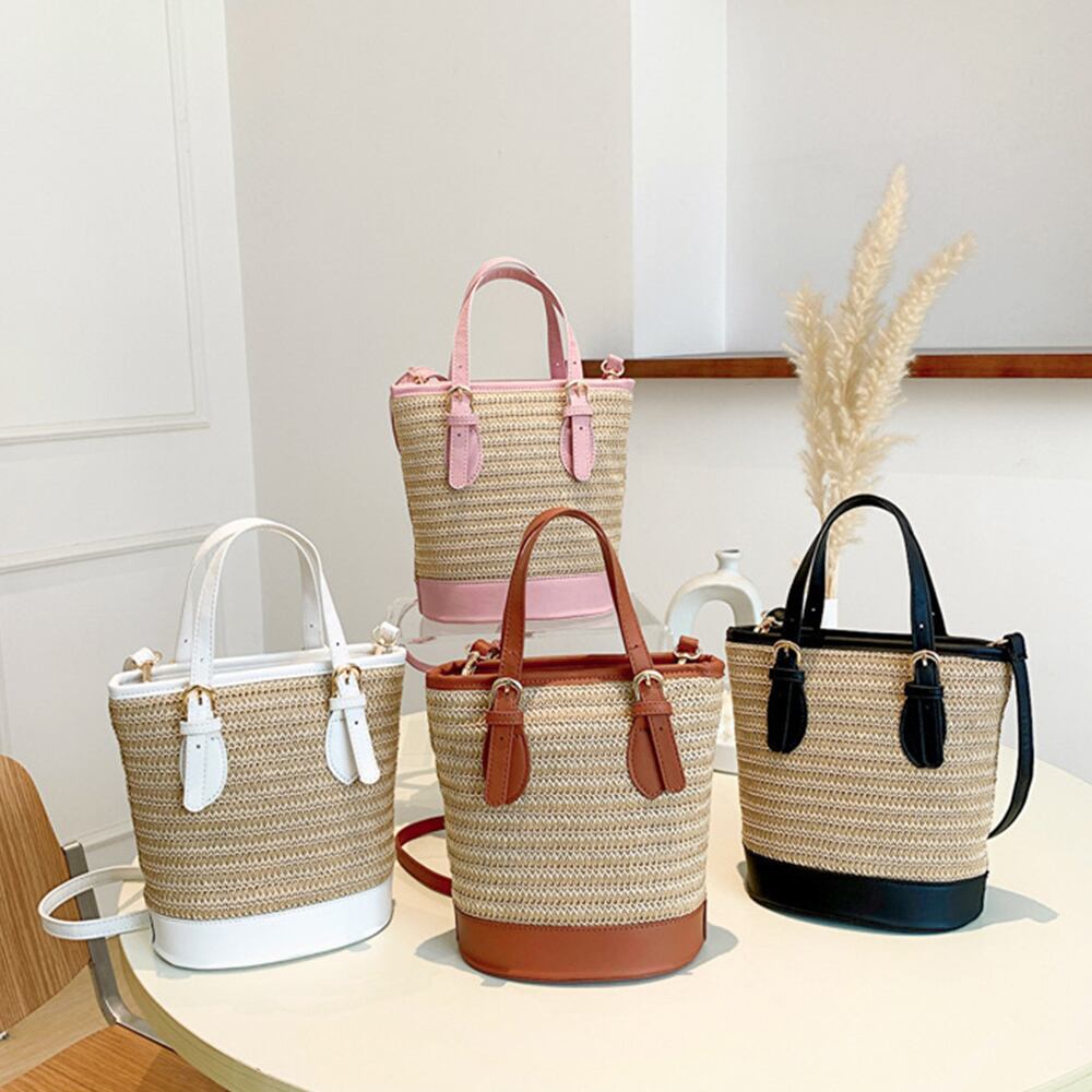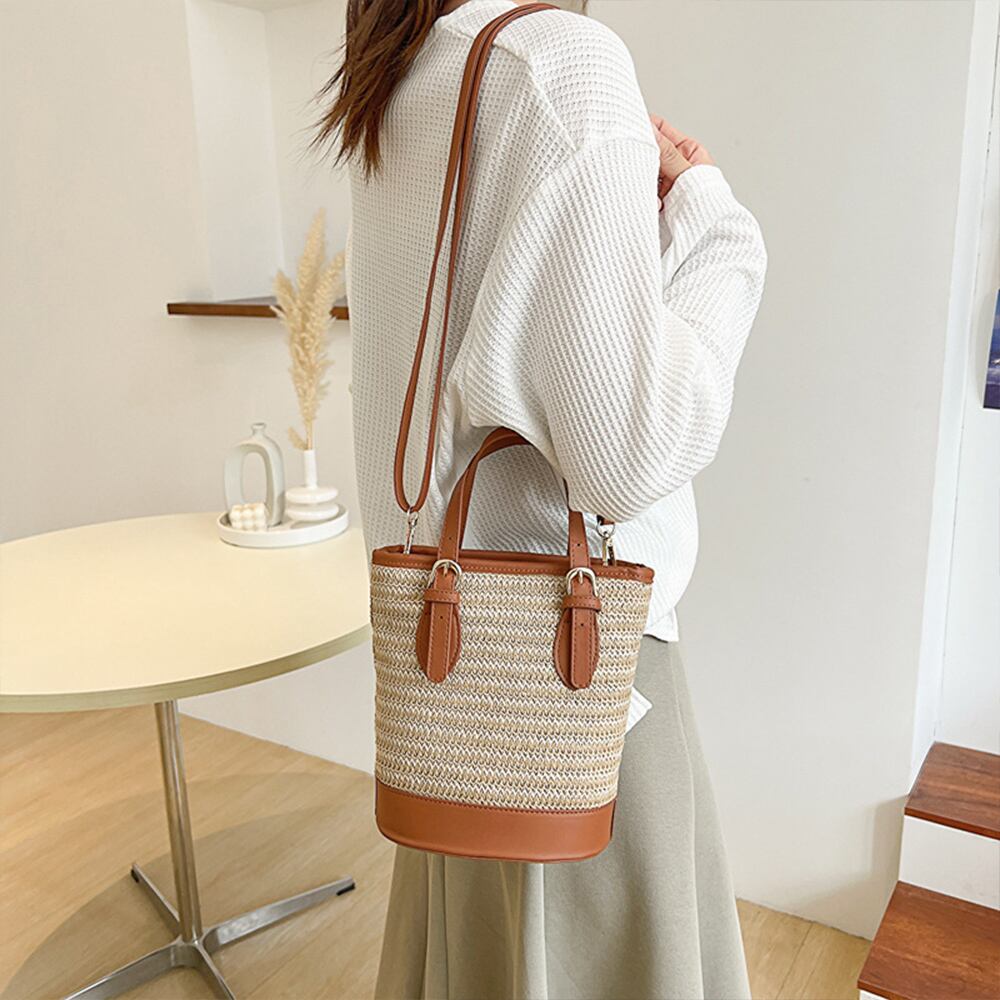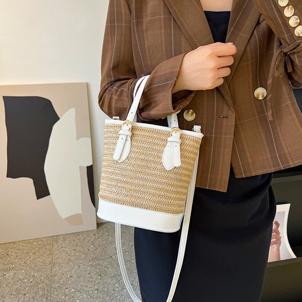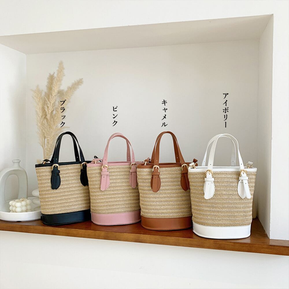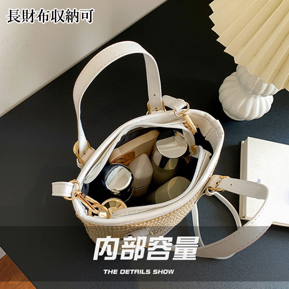 トートバッグ レディース 肩掛けカバン 大人かわいい手提げバッグ 2WAY カジュアル 鞄 サマーバケツバッグ おしゃれビーチバッグ 夏海 ペーパーかばん韓国 斜め掛け ミニ鞄涼し気な季節感のあるストロー素材を使用したかごバッグストロー(麦わら)素材は、暑さを和らげてくれるような素材感に、とっても軽い使い心地が特徴ショルダーは取り外し可能で、ハンドバッグとしても使える2WAYデザインも魅力リネン素材のワンピースやストローハットと合わせて、コーデに涼し気な雰囲気とこなれ感をプラスしたいときに!