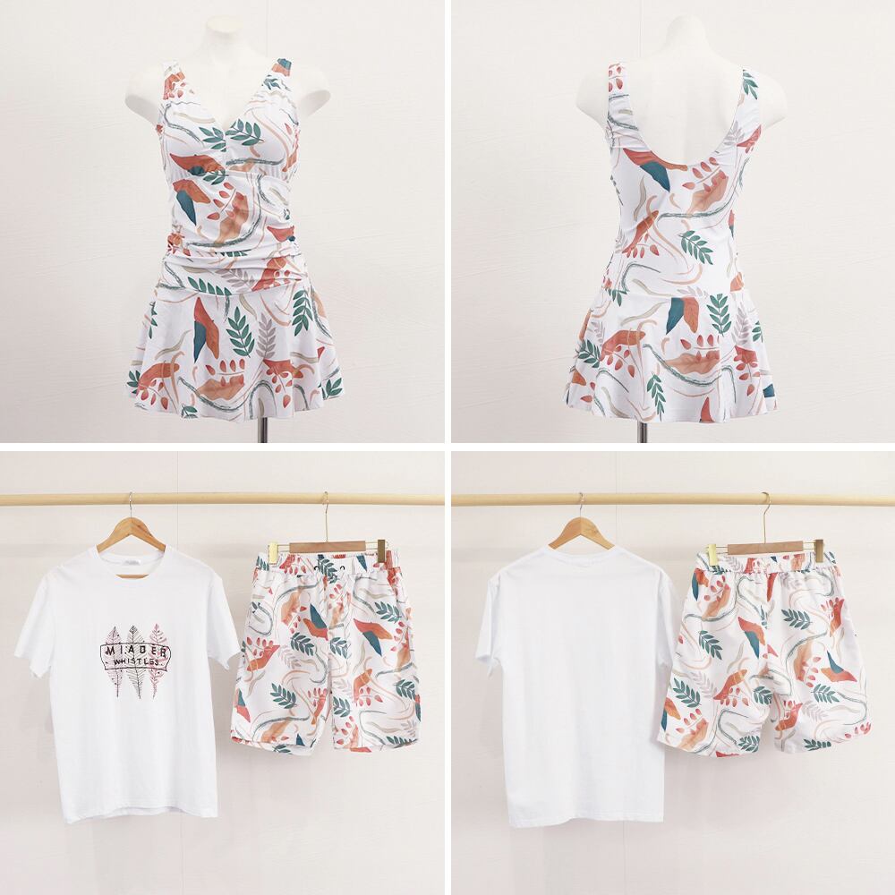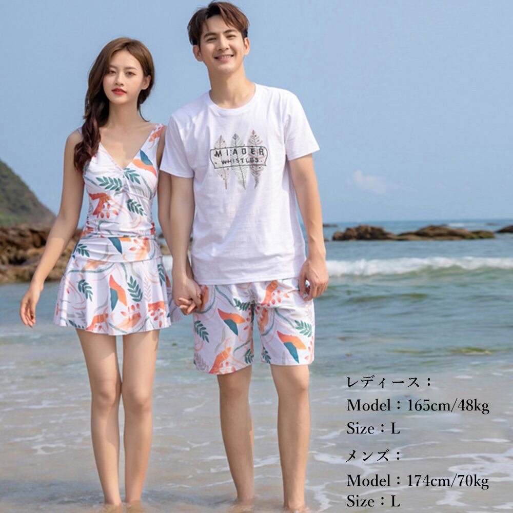 レディース 露出控えめ ワンピース水着 メンズ セパレート水着 夫婦 お揃い 男女 ビーチウエア 温泉 海外旅行 海水浴水着 大人可愛い 体型カバー女性水着 ハネムーンみずぎ開放的なビーチでラブリールックを演出するカップルのペアルック水着ワンピース水着は背中が開いたデザインで、より美しくセクシーに見える素材やデザインにこだわり、お互いに合わせたコーディネートができるため、ファッション感覚で楽しめる愛を確かめ合う瞬間がより特別なもの、普段のビーチやプール遊びだけでなく、ハネムーンや記念日の旅行など、特別なイベントにもぴったりメンズトップス素材: 綿95%+ポリエステル5%ボトムス素材: ポリエステル95%+綿5%レディースワンピース素材:ポリエステル85%+ポリウレタン15%タイプ:メンズ/レディースサイズ:L/XLメンズトップス:着丈:約69/70cm 肩幅:約47/48cm 袖丈:約20/20cm ゆき:約43.5/44cm 身幅:約50/53cm 胸囲:約100-116/106-122cmボトムス:着丈:約50/51cm 股下:約21/21cm ウエスト:約70-94/76-100cm(ゴム仕様) ヒップ:約116/120cm もも周り:約66/70cmレディース着丈:約73/77cm 身幅:約37/39cm バスト:約74-90/80-96cm ウエスト:約66-84/72-90cm 股下:約6/6cm もも周り:約46-64/48-66cm商品詳細:・パッド:あり(取り外し可能)・パッド挿入可・ワイヤー:なし裏地:前身頃部分のみあり伸縮性:あり透け感:なし※すべて平置きサイズです(採寸方法違いより、多少の誤差がございますので、ご了承ください)。