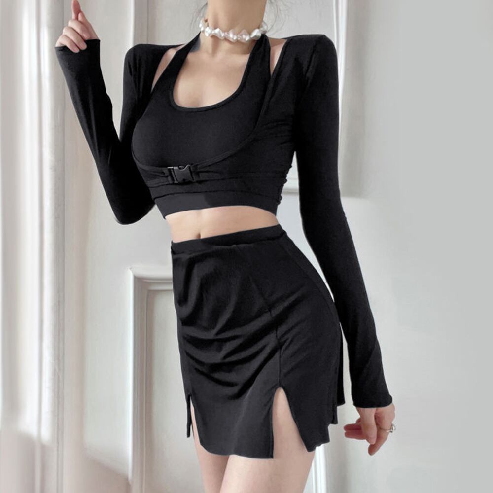 スポーツ水着セット スイムウェアセパレート 長袖ラッシュガード ハイウエスト水着日焼け防止 プール遊び 韓国風 水陸両用ジム運動用水着女性 タンキニ水着着やせ お洒落20代30代クールでおしゃれ見えするスイムウェア3点セット背中あきパッド付きキャミソールとインナーパンツタイプのスカートでカジュアルながらも女性らしい着こなしに日焼け対策としてもマストなラッシュガード付きウエストの高い位置を肌見せすることで、セクシーになりすぎないヘルシーなデザインが今の気分伸縮性抜群の生地で着心地も快適!