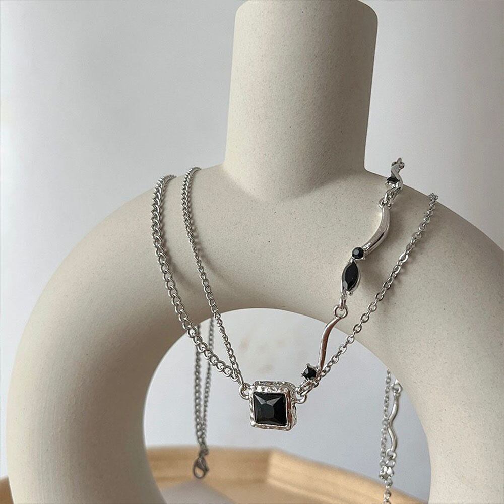 スクエアペンダント おしゃれ アシンメトリー 首飾り きれいめ チョーカー 韓流 重ね付け風 ジュエリー 10代20代重ね付け首飾り 異素材mix 太幅 二重鎖骨チェーン左右非対称デザインがとてもおしゃれなチョーカーネックレスです。