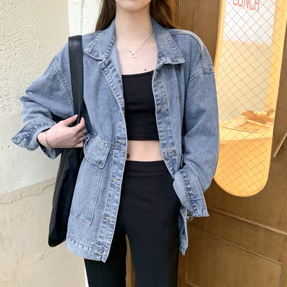 カジュアル レトロ風 ライトアウター長袖 おしゃれ デニムジャンパー 上着 ゆったり 着やせジージャン 体型カバー韓国デニムコート羽織り カジュアルトップス ストリート 春秋冬大きいポケット付きのデザインデニムジャケットドロップショルダーで羽織るだけでこなれた雰囲気さらっと1枚羽織るだけでトレンドライクな着こなしに変身する優秀アイテム、ベーシックデザインでロングシーズン着回しできる素材:綿95%+ポリエステル5%カラー:サックス/チャコールブラックサイズ:ワンサイズ着丈:約66cm 肩幅:約47cm 袖丈:約48cm ゆき:約71.5cm 身幅:約53cm 胸囲:約106cm裏地:なし伸縮性:なし透け感:なし生産国:中国※すべて平置きサイズです(採寸方法違いより、多少の誤差がございますので、ご了承ください)。