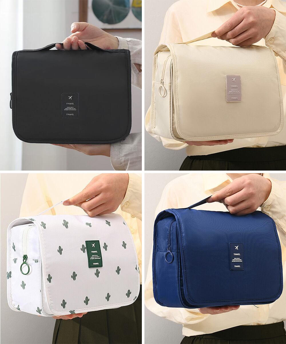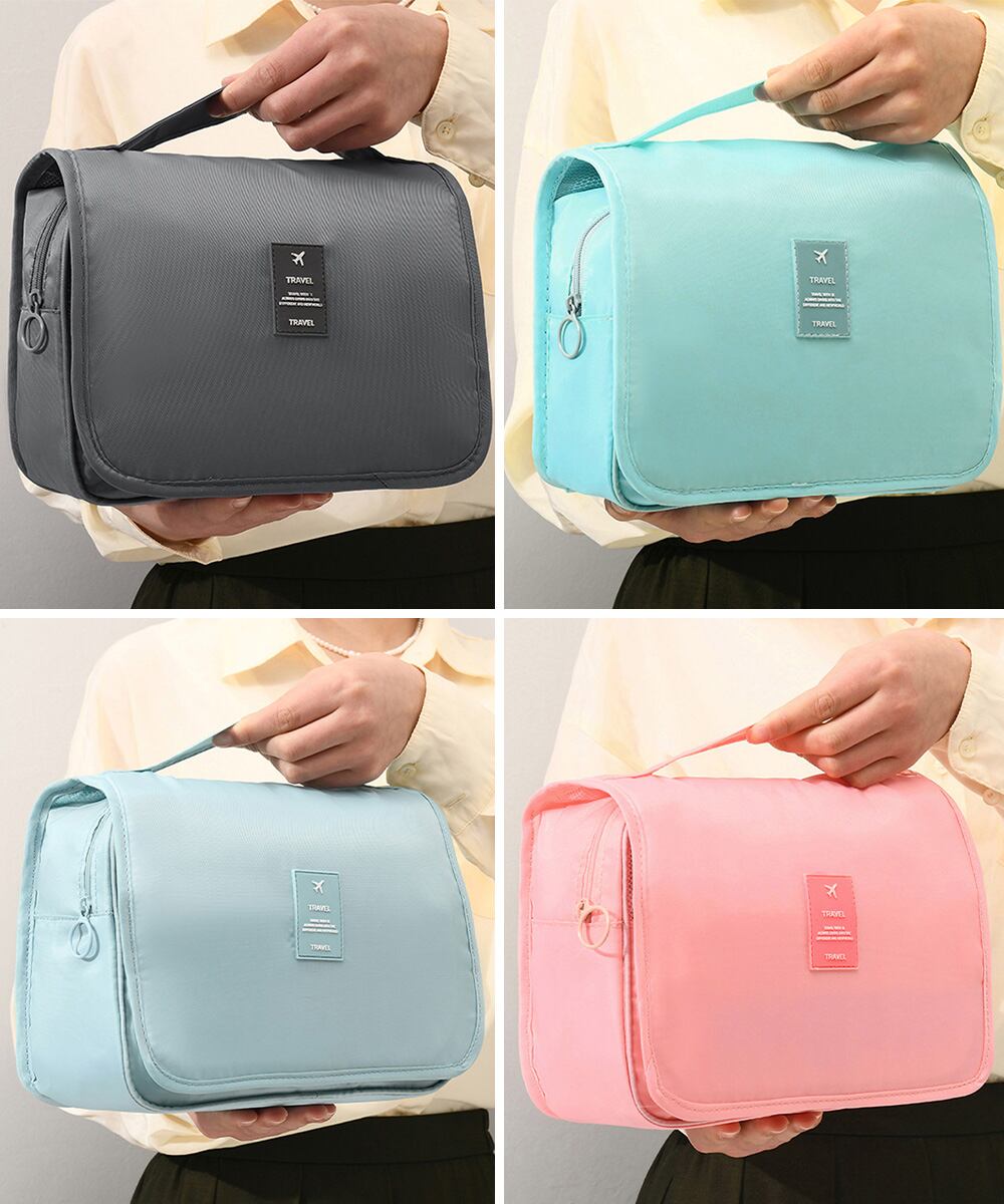 旅行や出張の時に化粧品や洗面道具などまとめて収納できるメイクポーチ