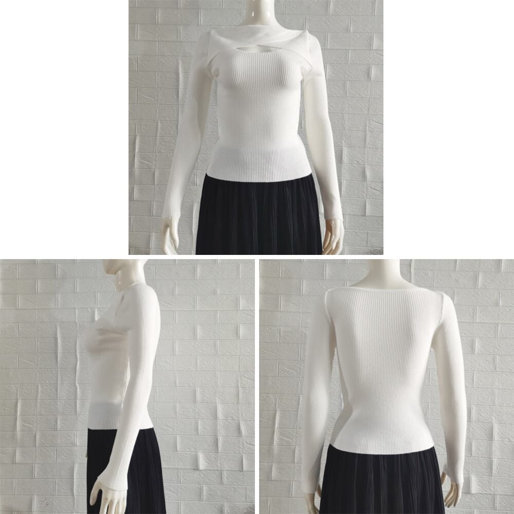 ベーシックニット 肌見せ ニットウェア 大人カジュアル ニットインナー 着やせ ねじりニットソー ストレッチプルオーバータイトトップス春秋 着回しニット重ね着 女性ニットソー無地フロントのツイストデザインがレディなアクセントのリブニットトップス体にぴったりにフィットし、体のラインを綺麗に魅せてくれるパンツにもスカートにも合わせやすく華やかなシーンにもぴったりなアイテム素材:ポリエステル65%+綿35%カラー:ブラック/ホワイト/ベージュ/ダークベージュ/ピンクサイズ:ワンサイズ着丈:約50cm 肩幅:約32cm 袖丈:約57cm ゆき:約73cm 身幅:約36cm 胸囲:約72-140cm裏地:なし伸縮性:あり透け感:ホワイトのみややあり※ニット素材の為、伸縮具合によっては編みに隙間を感じる場合があります生産国:中国※すべて平置きサイズです(採寸方法違いより、多少の誤差がございますので、ご了承ください)。