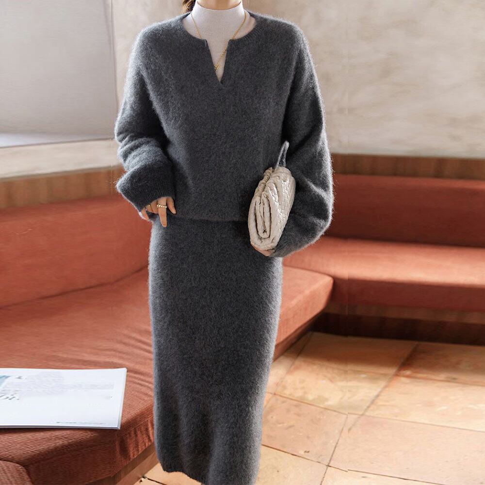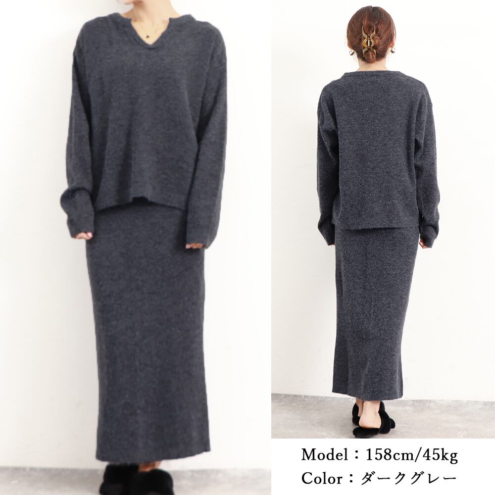 レディース 上下2点セット ニットアンサンブル キーネック 長袖 あたたかセーター オルチャンロングスカート秋冬お洒落ニットセット40代 大人長袖ニット無地 オフィスカジュアル大人フェミニンコーデが即完成できるニットセットアップトップスはゆるシルエットにボトムスはタイトスカートで絶妙バランスコーデに☆さらに柔らかな肌触りのニット素材で仕上げて、ストレスフリーで着用できる着るだけで今っぽく仕上がり、忙しい朝も即コーディネートが完成する優れものセットアップとしてはもちろん、それぞれ単体でも使えるため、着回し力抜群のアイテム素材:ポリエステル65%+アクリル35%カラー:ダークグレー/モカベージユサイズ:ワンサイズトップス:着丈:約56cm 肩幅:約51cm 袖丈:約52cm ゆき:約77.5cm 身幅:約52cm 胸囲:約104-140cmスカート:着丈:約81cm ウエスト(ゴム仕様):約70-110cm ヒップ:約80-120cm裏地:なし伸縮性:あり透け感:なし生産国:中国※すべて平置きサイズです(採寸方法違いより、多少の誤差がございますので、ご了承ください)。
