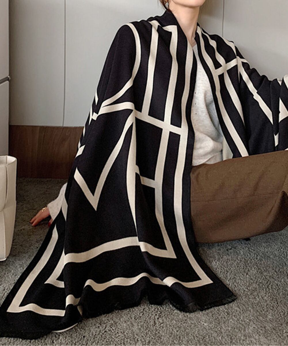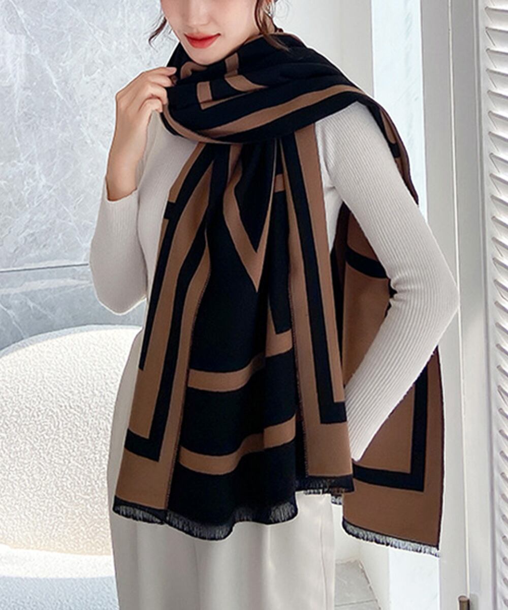 【日本倉庫即納】 リバーシブル大判マフラー幾何学柄ストール