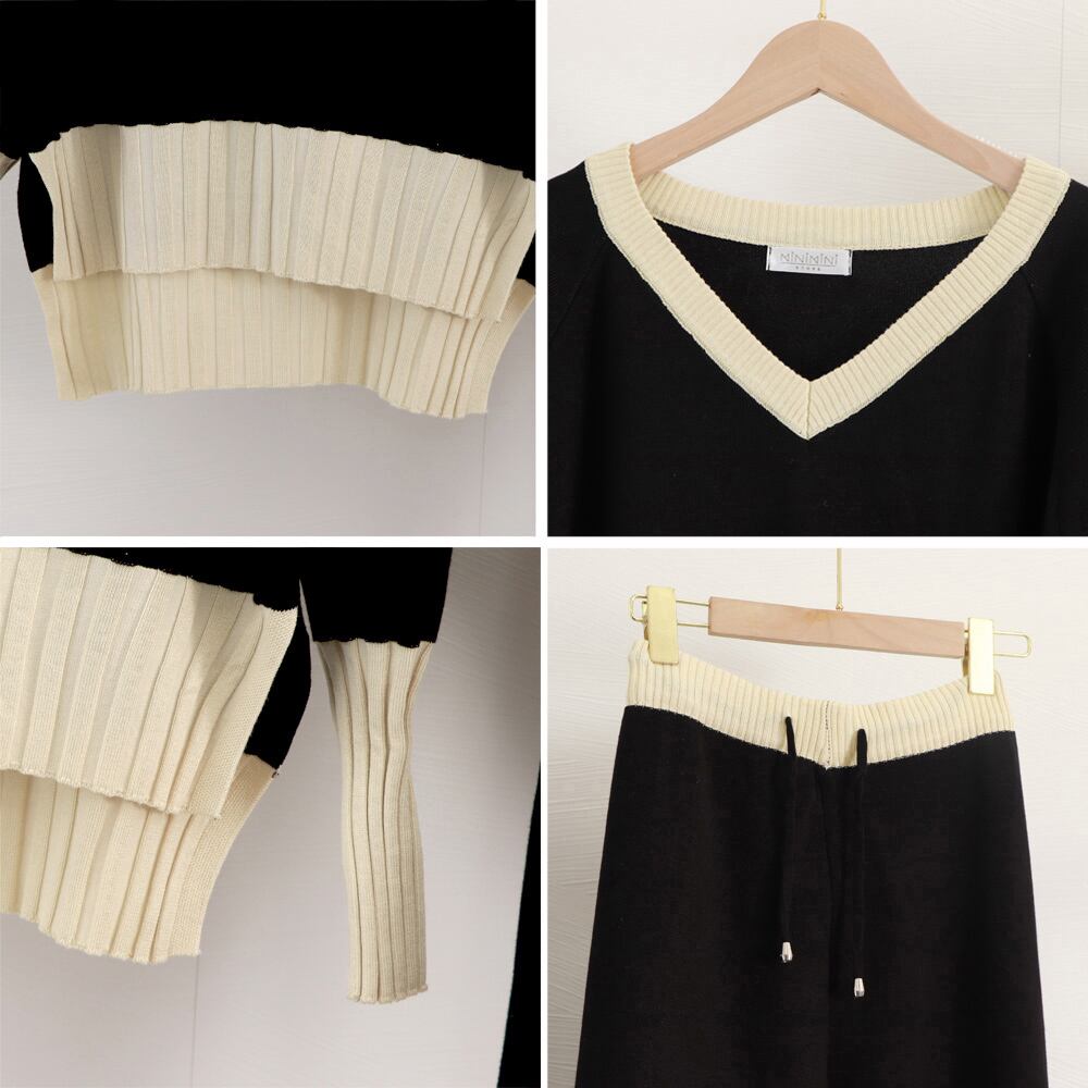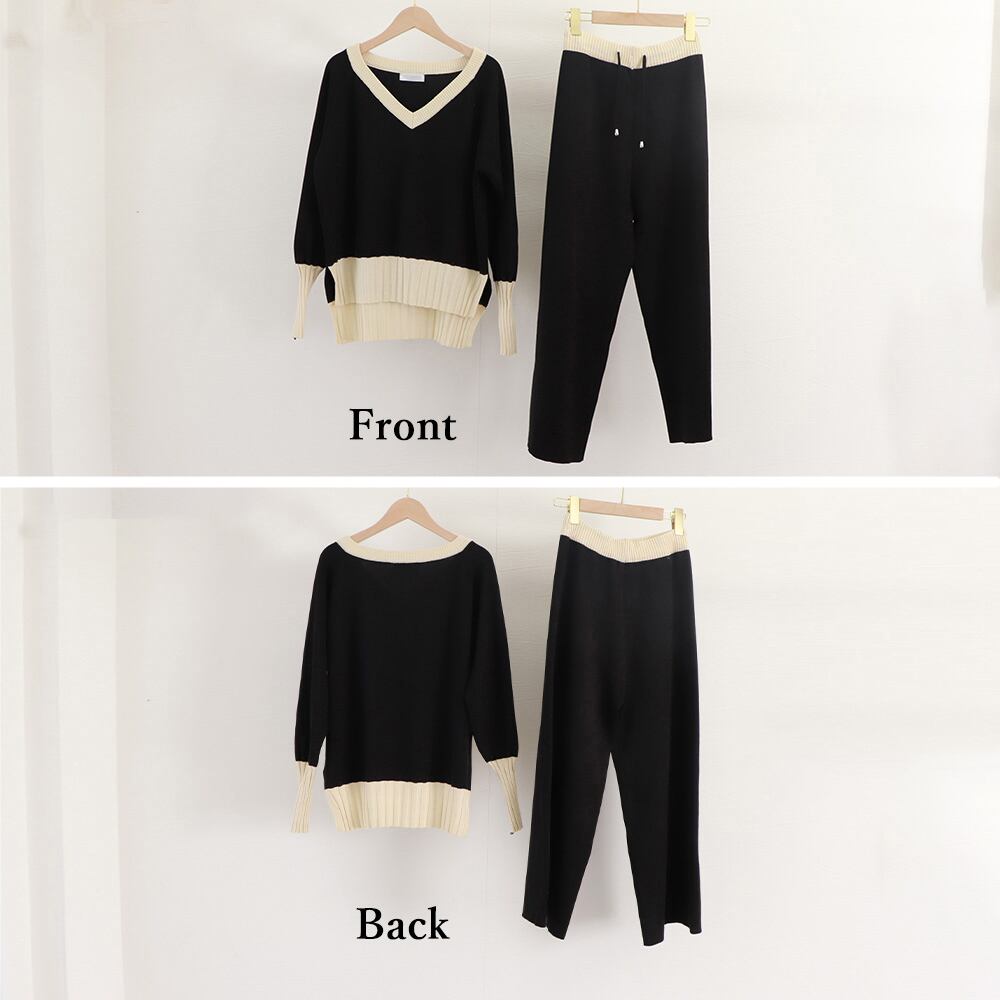 バイカラーニットセットアップ レディース
