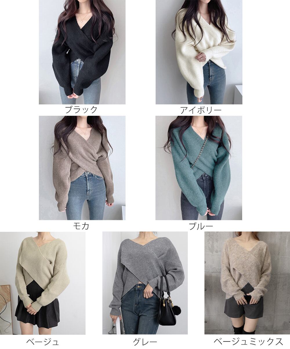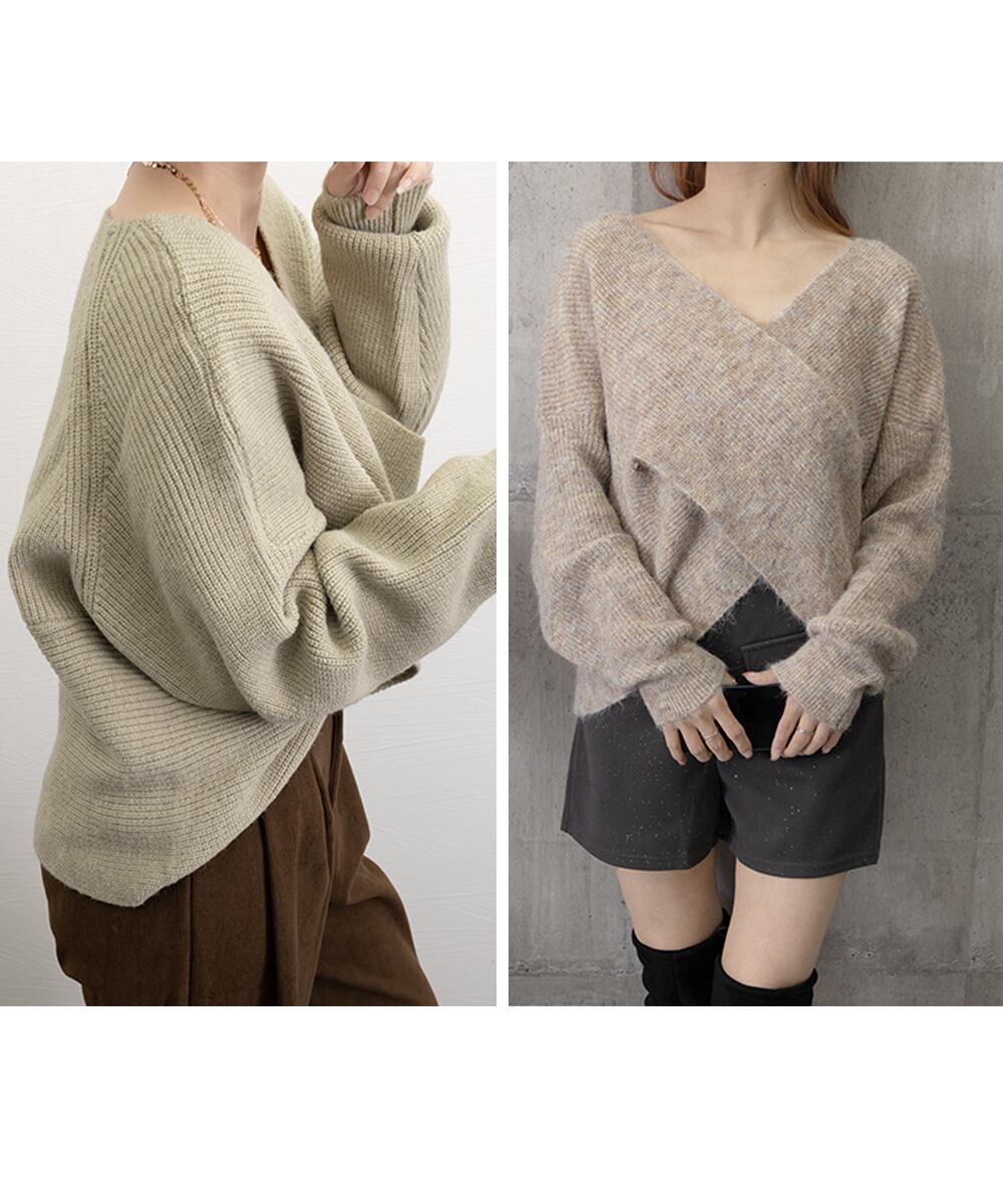 クロスに重なったデザインが主役級なカシュクールニットトップス
