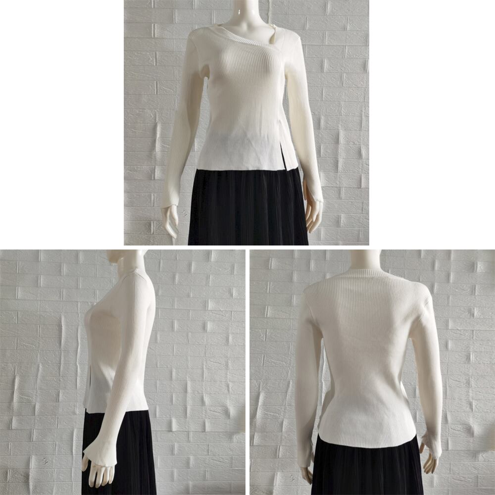 レディース 重ね着 ニットウエア 着やせ カジュアル ニットプルオーバー 春秋冬 着回しニットソー きれいめタイトニット長袖無地ニットソー ニットインナー韓国 普段着ニットトップフロントの斜め前にスリットがアクセントを効かせたリブニットトップスボディラインに沿ったタイトなシルエットで綺麗なラインを生み出し、女性らしい着こなしに合わせるボトムスを選ばず幅広く使えるので、普段使いはもちろん、スカートやスラックスにジャケットを合わせてもOK素材:ポリエステル65%+綿35%カラー:ブラック/ホワイト/ベージュ/グレーサイズ:ワンサイズ着丈:約52cm 肩幅:約32cm 袖丈:約53cm ゆき:約69cm 身幅:約37cm 胸囲:約74-135cm裏地:なし伸縮性:あり透け感:ホワイトのみややあり※ニット素材の為、伸縮具合によっては編みに隙間を感じる場合があります生産国:中国※すべて平置きサイズです(採寸方法違いより、多少の誤差がございますので、ご了承ください)。