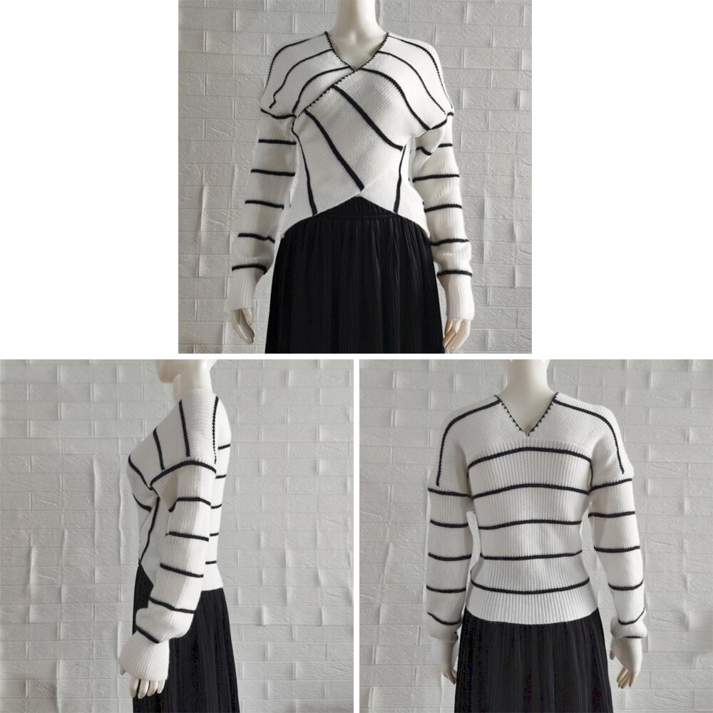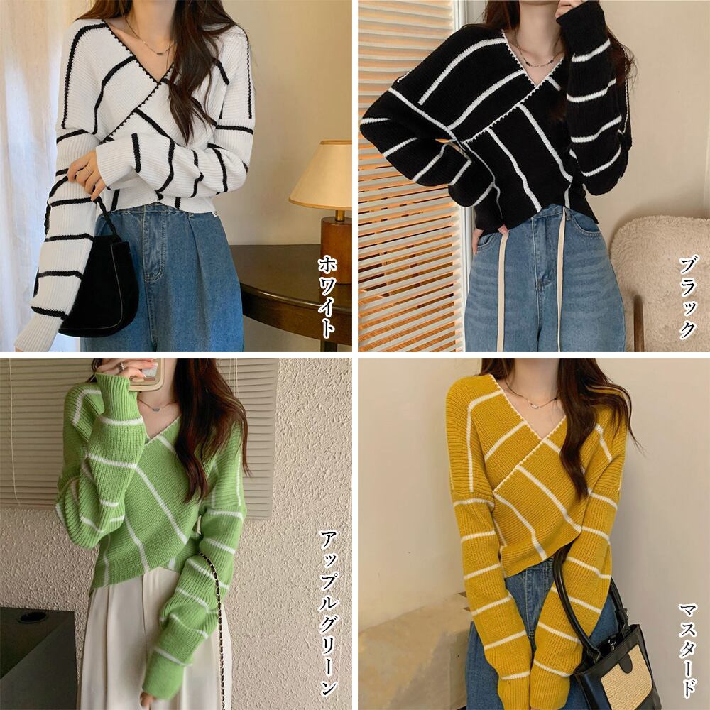 レディース ボーダー柄 ニットセンター 大人カジュアル ショート丈 ニットウエア 肩だし きれいめ ニットソー Vネック韓国風 ニットソー 着やせニットトップ ニットセンター長袖フロントのクロスデザインがウエストをすっきりと見せてくれ、Vネックの開きで顔周りはシャープな印象を与えてくれるニットトップスショート丈で、セクシーかつこなれ感のある今年らしいハイウエストのボトムスを合わせればスタイルアップコーデが完成素材:ポリエステル65%+アクリル%カラー:ブラック/ホワイト/アップルグリーン/マスタードサイズ:ワンサイズ着丈:約52cm 肩幅:約58cm 袖丈:約48cm ゆき:約77cm 身幅:約38cm 胸囲:約76-135cm裏地:なし伸縮性:あり透け感:ホワイトのみややあり※ニット素材の為、伸縮具合によっては編みに隙間を感じる場合があります生産国:中国※すべて平置きサイズです(採寸方法違いより、多少の誤差がございますので、ご了承ください)。