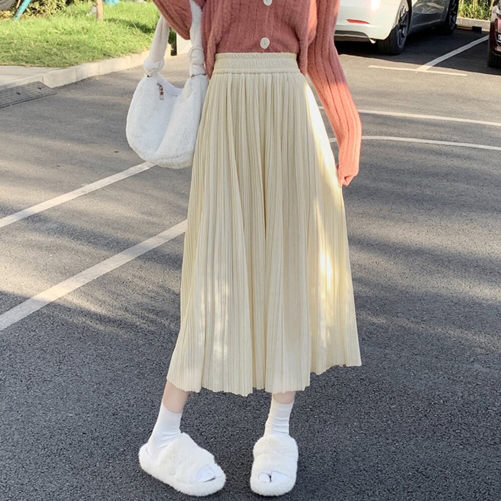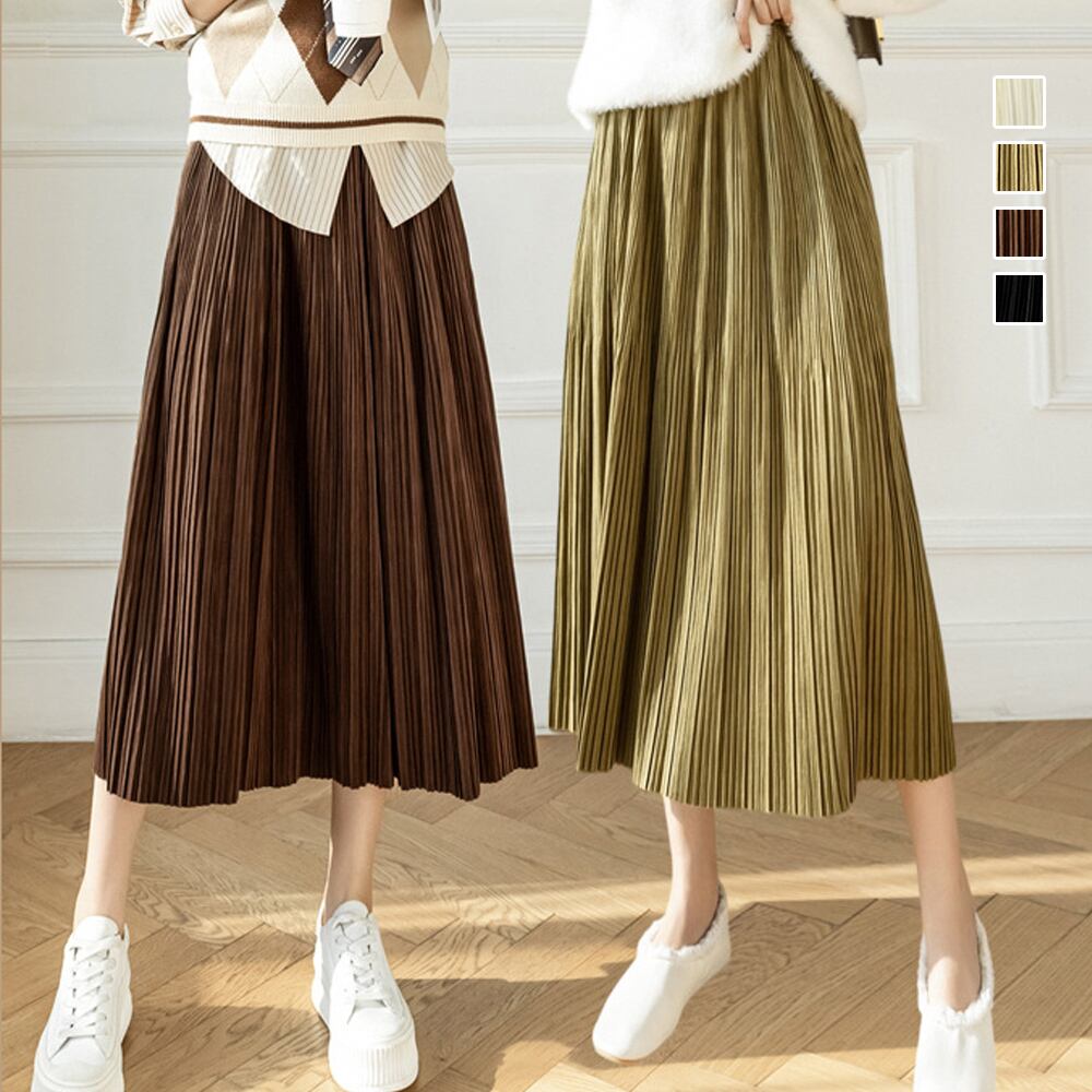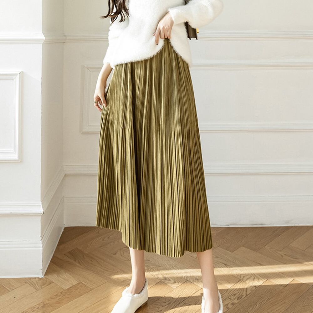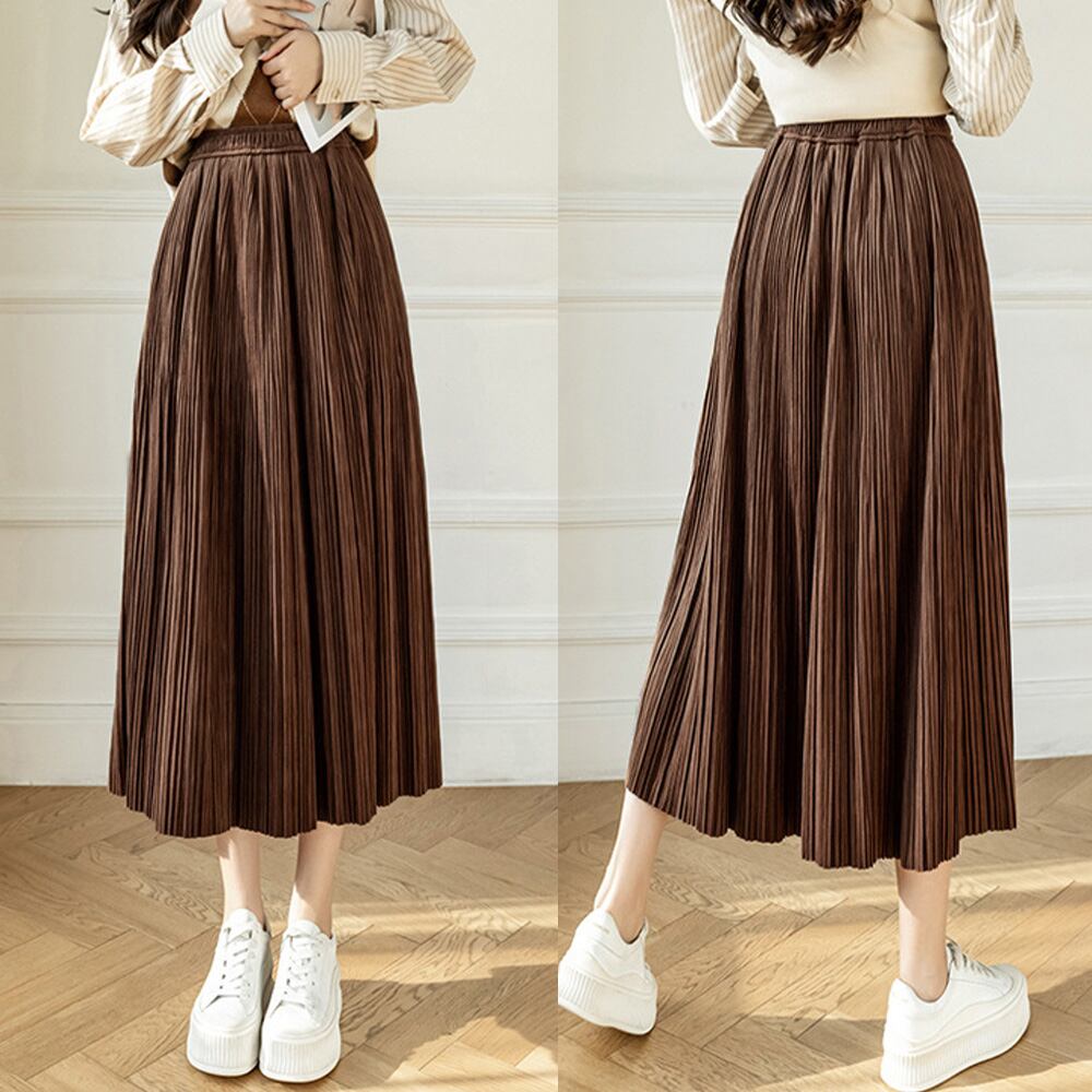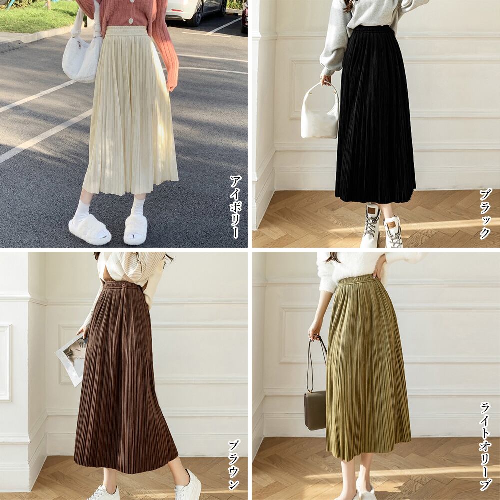 レディース ミモレ丈スカート ウエストゴム 無地 フレアスカート きれいめ ボトムス 体型カバー 韓国風Aラインスカートカジュアルスカート 無地ボトムス着やせ 秋冬ロングスカート細かいプリーツデザイン、歩くたびに綺麗に広がるプリーツは女性らしさを演出するスカートウエスト部分はゴム仕様なので、楽に履けるだけでなくおなか周りをすっきりとまとめてくれる秋口から春先まで、ロングシーズン大活躍に間違いなし素材:ポリエステル100%カラー:ブラック/アイボリー/ブラウン/ライトオリーブサイズ:ワンサイズスカート丈:約77cm ウエスト(ゴム仕様):約60-110cm ヒップ:約108cm裏地:なし伸縮性:なし透け感:なし生産国:中国※すべて平置きサイズです(採寸方法違いより、多少の誤差がございますので、ご了承ください)。