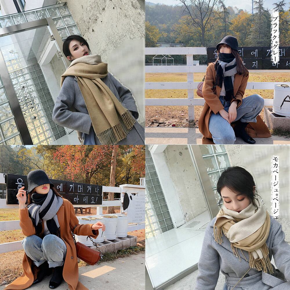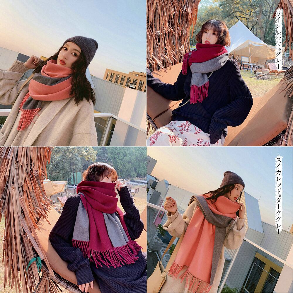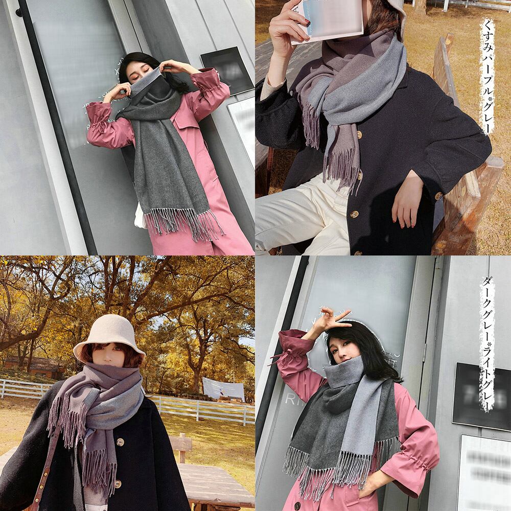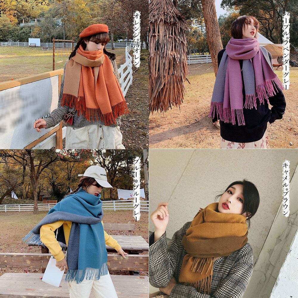 レディース ふんわり スカーフショール 大判 秋冬マフラー 韓国風 ブランケット 通勤通学 厚手ポンチョおしゃれひざ掛け配色マフラー 防寒 マフラープレゼント 両面ストール肩掛けシンプルでスタイリッシュなフリンジ付きデザイン。
