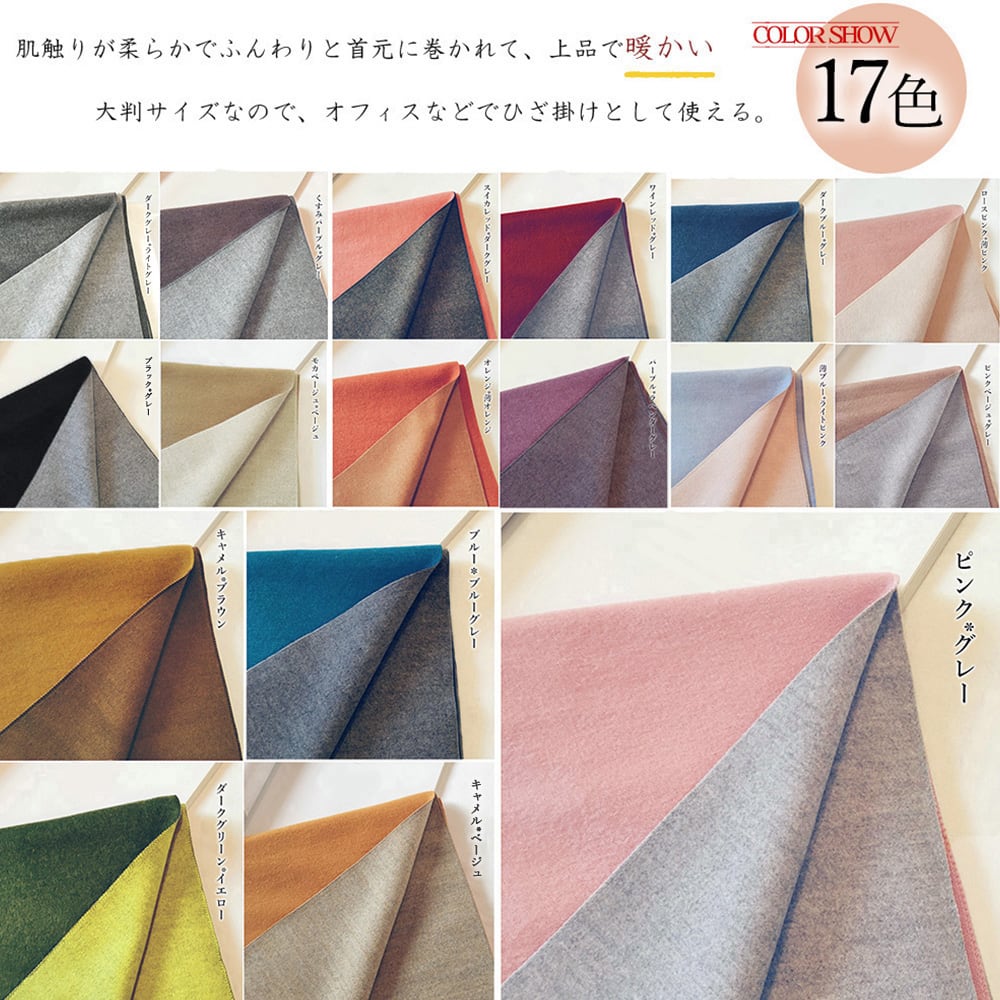1枚でオシャレの幅が広がる大判配色ストールツートンカラーのリバーシブル仕様なので、巻き方次第で雰囲気が変わり、コーディネートの幅も広がります、その日の気分でアレンジ自在お出かけ時はもちろん、肌寒い室内でも、一日中使えて便利素材:ポリエステル80%+レーヨン20%カラー:くすみパープル*グレー/ダークグレー*ライトグレー/ブラック*グレー/モカベージュ*ベージュ/ダークブル−*グレー/ロースピンク*薄ピンク/薄ブルー*ライトピンク/ピンクベージュ*グレー/スイカレッド*ダークグレー/ワインレッド*グレー/オレンジ*薄オレンジ /パープル*ラベンダーグレー/ブルー*ブルーグレー/キャメル*ブラウン/ピンク*グレー/ダークグリーン*イエロー/キャメル*ベージュ全長:約200cm ※フリンジを含む横幅:約65cmフリンジ:約9cm伸縮性: あり透け感:なし生産国:中国※すべて平置きサイズです(採寸方法違いより、多少の誤差がございますので、ご了承ください)。