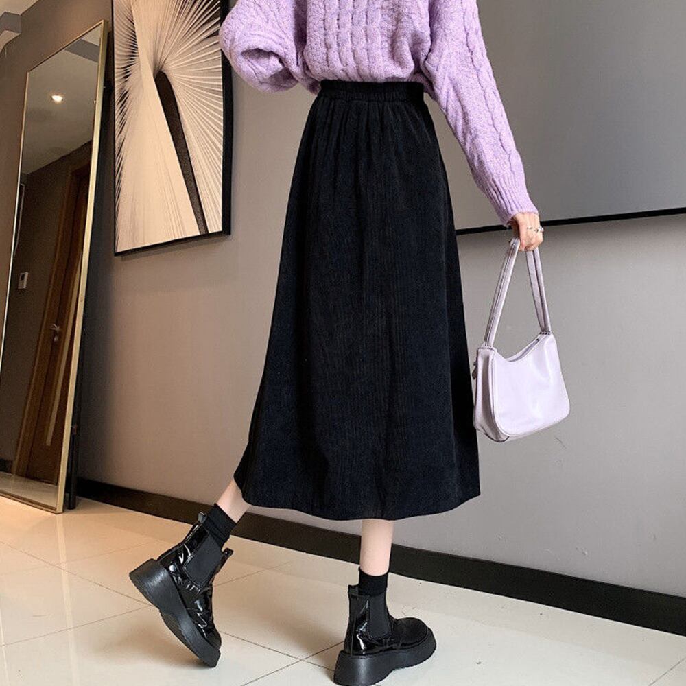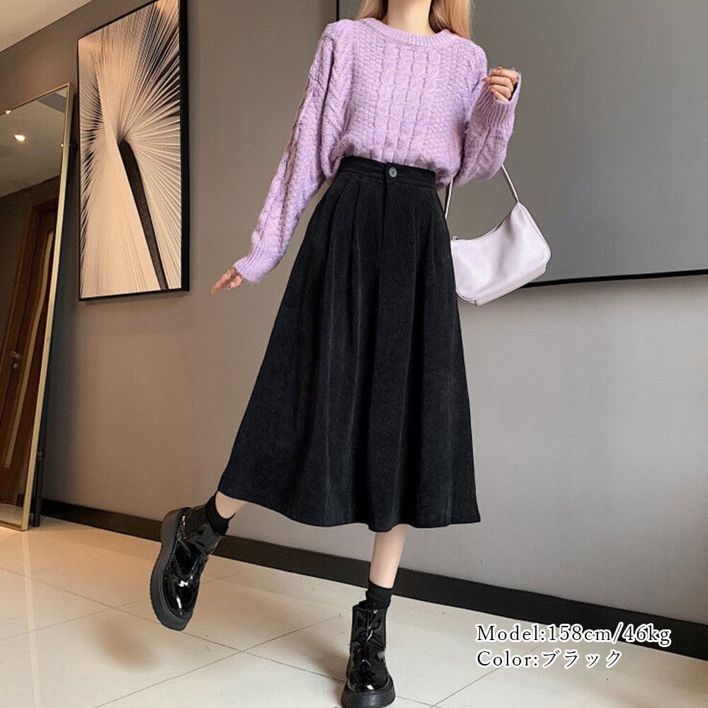 ハイウエスト ミモレ丈スカート バックゴム仕様 ロングスカート カジュアル 大人ボトムズ ポケット付き Aラインスカート着回し美脚スカート きれいめボトムズ 着やせ無地スカートコーデュロイ生地がコーデに季節感漂うニュアンスをプラスしてくれるスカートポケット付きなのも嬉しいポイントフレアシルエットが女性らしさを際立たせ、ミモレ丈に設定することで低身長の方にも安心な一着にシンプルなデザインで、カジュアルにもキレイめにも使える着回しの効くアイテム素材:ポリエステル65%+綿35%カラー:ブラック/ブラウンサイズ:ワンサイズスカート丈:約76cm ウエスト:約58-92cm(後ろゴム仕様) ヒップ:約90cm裏地:なし伸縮性:なし透け感:なし生産国:中国※すべて平置きサイズです(採寸方法違いより、多少の誤差がございますので、ご了承ください)。