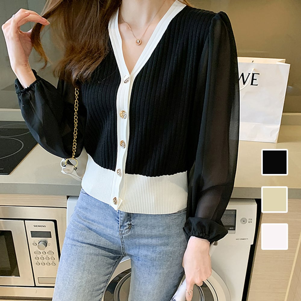 シフォンニット切り替え リブニット Vネック 女性 長袖 異素材ニットウェア ストレッチ シースルー 袖 ニットセーターカーディガン前開き パフスリーブ透け感 大人可愛い ニット異素材の切り替えデザインが旬なスタイルを楽しめるトップス袖のシフォンは程よい透け感で上品な印象にVネックでさりげない肌見せと袖周りのボリューム感がバランスよく絶妙にマッチスカートと合わせてフェミニンに着こなすのはもちろん、デニムと合わせてカジュアルスタイルにもおすすめ本体素材:ポリエステル75%+アクリル25%別布素材:ポリエステル100%カラー:ホワイト/ブラック/ベージュサイズ:ワンサイズ着丈:約51cm 肩幅:約36cm 袖丈:約56cm ゆき:約74cm 身幅:約44cm 胸囲:約88-130cm裏地:なし伸縮性:ニット部分あり透け感:袖部分あり/ホワイト色のみニット部分ややあり生産国:中国※すべて平置きサイズです(採寸方法違いより、多少の誤差がございますので、ご了承ください)。