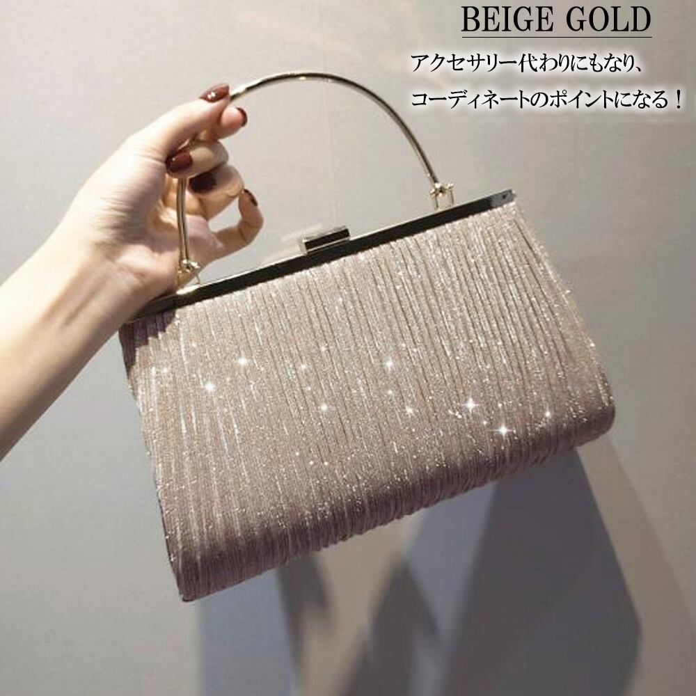 おしゃれ サテンプリーツ ハンドバッグ キラキラ ミニチェーンバッグ 斜めがけ ショルダーバッグ 小さめ鞄 フォーマルキャババッグ 上品 かばん披露宴二次会 お呼ばれバッグ 黒華やかなラメ生地にプリーツ加工を施し、上品さをプラスした3wayがま口パーティーバッグですゴールド金具のハンドルで高級感が溢れます取り外し可能なチェーン付きでショルダーバッグとして使っていただけます結婚式、発表会や謝恩会など多様なシーンのコーディネートに使えます素材:ポリエステル+合金カラー:ブラック/ベージュゴールドサイズ:高さ:約17cm 底横幅:約25cm 持ち手:約24cm(調節不可、取り外し不可) ショルダー:約96cm(調節不可、取り外し可)重さ:約300g裏地:あり内ポケット:あり生産国:中国※すべて平置きサイズです(採寸方法違いより、多少の誤差がございますので、ご了承ください)。