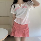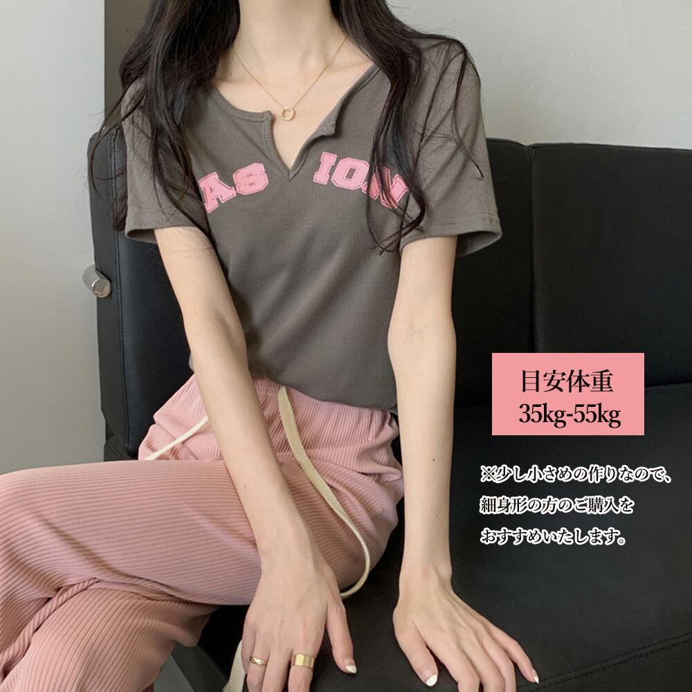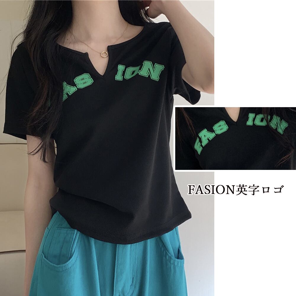 Vネックトップス 半袖 カットソー ロゴt ショート丈 薄手 ニットトップス夏服 かわいい Tシャツ おしゃれ お洒落カジュアルtシャツ オルチャン 春秋夏 ストリートセクシーフロントに開いたVネックが女性らしいシルエットにしてくれるシンプルな半袖ニットtシャツピタッと着ても伸縮性があり、程よくフィット感、ラクな着心地が嬉しいカジュアルにも綺麗めにも幅広いコーディネートにマッチしてくれる。