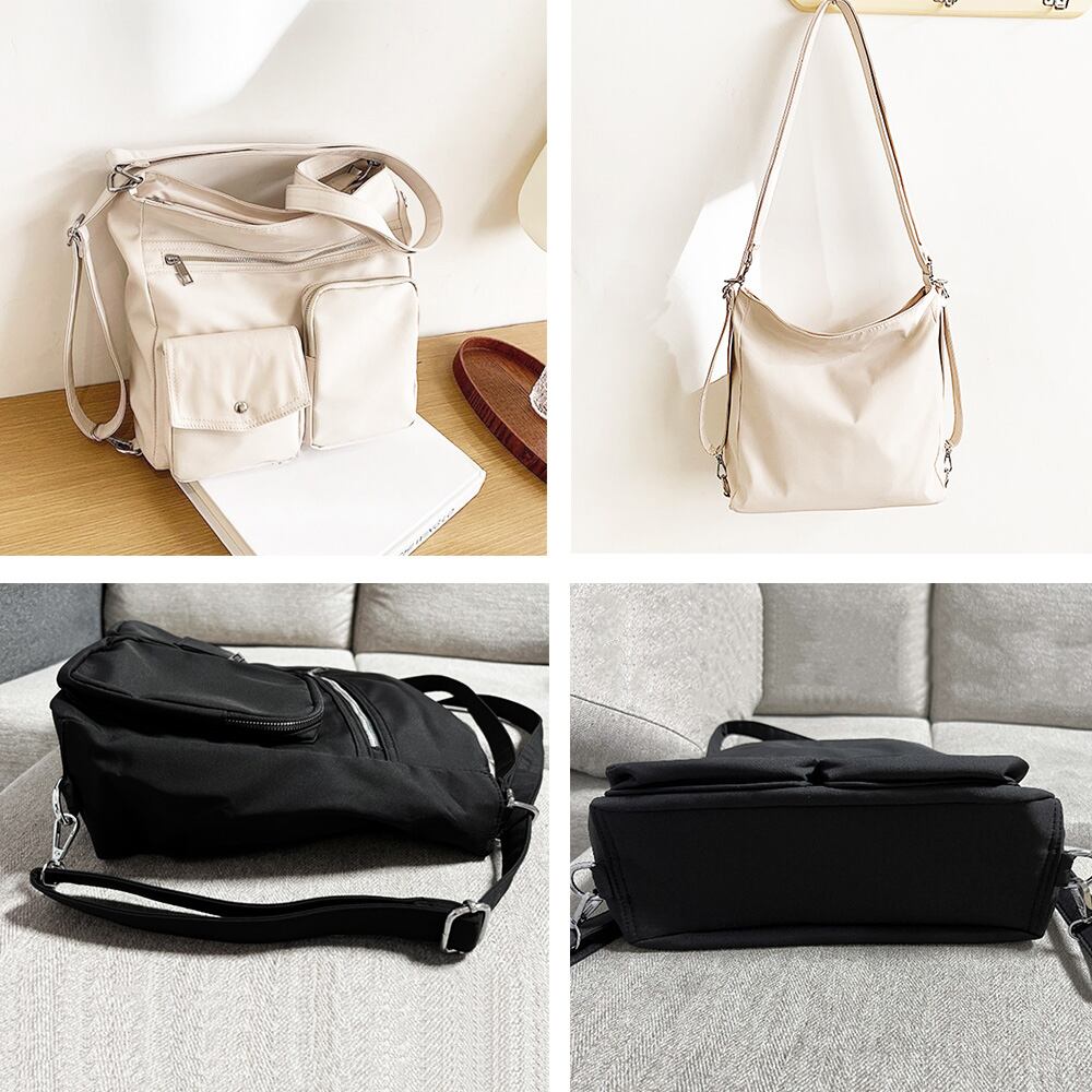 リュックサック スクールショルダー シンプル バッグ レディース 斜めかけ A4サイズ対応 ユニセックス マザーズバッグ鞄 男女兼用 軽量 かばん 通勤 通学 ファスナーポケット上質なナイロン素材で仕上げた軽量で実用的な大容量ショルダーバッグですフロント部分に大きめポケットも付いており収納力抜群ですA4サイズ対応で多収納なので、マザーズバッグとしてもおすすめ、ショルダーを調節可能、斜めがけでもリュックサックとしてもお使いいただけます素材:ナイロン+ポリエステルカラー:ブラック/アイボリー/ブルーグレー/テラコッタサイズ:高さ:約29cm 底横幅:約30cm マチ:約10cm ショルダー:約50-114cm(調節可、取り外し不可)重さ:約335g裏地:あり内ポケット:あり生産国:中国※すべて平置きサイズです(採寸方法違いより、多少の誤差がございますので、ご了承ください)。