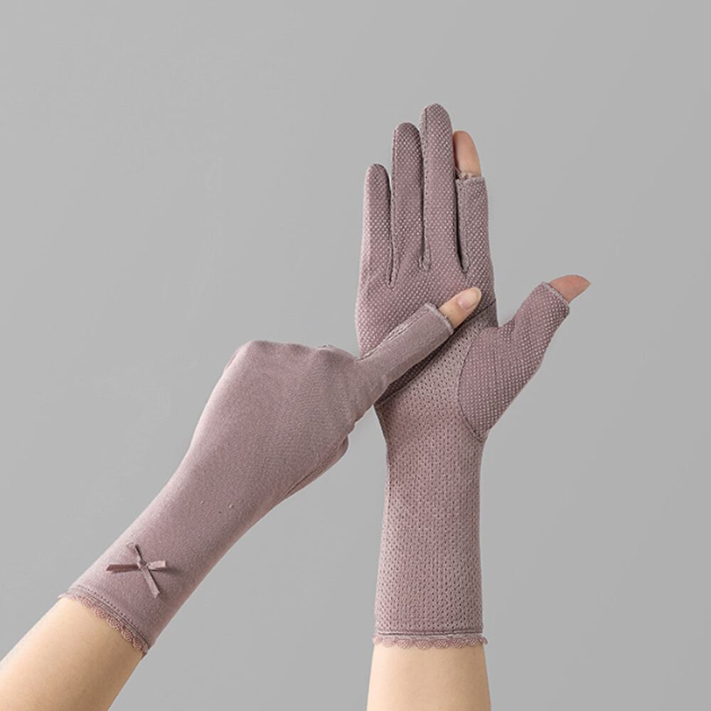 おしゃれ 手袋 薄手 滑り止め付き かわいい グローブ 日焼け対策 女性用 手ぶくろ アウトドア 指切り ジョギングてぶくろ 自転車 サマーグローブ夏海 手袋 スマホ 女子暑くなるこれからの時季に快適にお使いいただける紫外線防止手袋通気性の良い素材を使用し、長時間の着用でも蒸れにくく快適性を保つウォーキングや散歩、自動車や自転車を運転する時など幅広いシーンで活躍素材:綿58.7%+ポリエステル41.3%カラー:ブラック/ベージュ/グレー/ダークピンク/薄ピンク/くすみパープルサイズ:ワンサイズ全長:約28cm甲幅:約8cm中指長さ:約4.5cm裏地:なし伸縮性:ややあり透け感:なし生産国:中国※包装に関しての注意点:こちらの商品は激 安で販売しているため、化粧箱は付いていませんが、商品に傷付かないよう簡易包装で発送とさせていただきます。