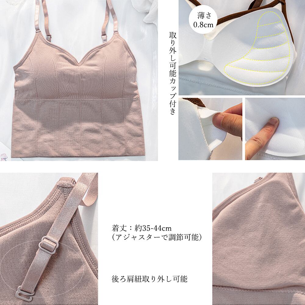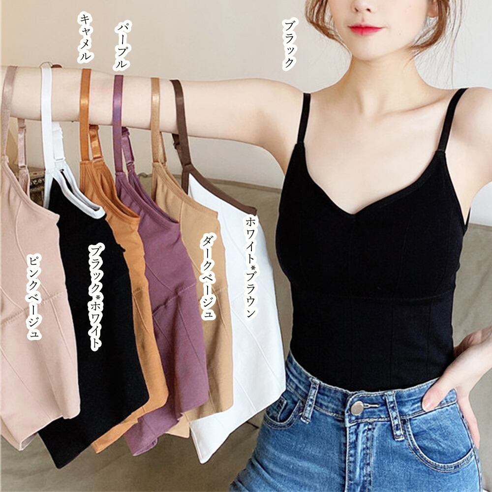 カップ付きキャミ Vネック レディース リブ ノンワイヤー ブラ 背中開き 細リブ素材 フィット感パッド付き 夏 ショート丈 配色 ヨガ スポーツブラ背中開きデザインで後ろ姿をきれい魅せしてくれるカップ付きキャミソール伸縮性に優れた弾力感のある、柔らかく肌触りの細リブ素材でフィット感がある着け心地取り外し可能なカップインデザインで1枚で夏のインナーにピッタリ素材:ポリエステル95%+ポリウレタン5%カラー:ブラック/ブラック*ホワイト/ホワイト*ブラウン/ダークベージュ/ピンクベージュ/キャメル/パープルサイズ:ワンサイズ着丈:約35-44cm(アジャスターで調節可能)トップバスト:約66-86cmアンダーバスト:約60-80cmワイヤー:なしカップ:あり(取り外し可能)裏地:カップ部分のみあり伸縮性:あり透け感:なし生産国:中国※すべて平置きサイズです(採寸方法違いより、多少の誤差がございますので、ご了承ください)。