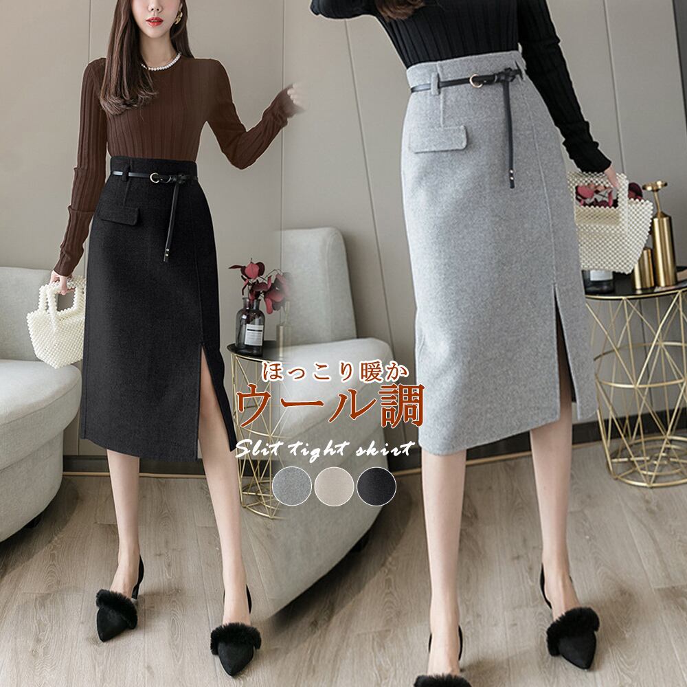 ベルト付き フロントスリット ペンシルスカート30代40代 きれいめ Iラインスカート 上品 清楚 ボトムス ミディ丈膝下タイトスカート エレガントスカート タイトスカート 黒ハイウエスト仕様でスタイルアップ、上品に仕上げたウールタッチのロングスカート程良くフィットするタイトDESIGNは女性らしさを引き出し、フロントスリットで抜け感をプラス、コンシールファスナーですっきりとした後ろ姿を描き上げるコンパクトなニットを合わせてきれいめに、ふんわりゆるめのニットでメリハリのある大人カジュアルSTYLEもステキ表地素材:ポリエステル70%+綿30%裏地素材:ポリエステル100%カラー:ブラック/アイボリー/ライトグレーサイズ:S/M/L/XL/2XL[S]スカート丈:約64cm 裏地丈:約35cm ウエスト:約64cm ヒップ:約84cm[M]スカート丈:約65cm 裏地丈:約36cm ウエスト:約68cm ヒップ:約88cm[L]スカート丈:約66cm 裏地丈:約37cm ウエスト:約72cm ヒップ:約92cm[XL]スカート丈:約67cm 裏地丈:約38cm ウエスト:約76cm ヒップ:約94cm[2XL]スカート丈:約68cm 裏地丈:約39cm ウエスト:約78cm ヒップ:約96cm裏地:あり伸縮性:なし透け感:なし生産国:中国※すべて平置きサイズです(採寸方法違いより、多少の誤差がございますので、ご了承ください)。