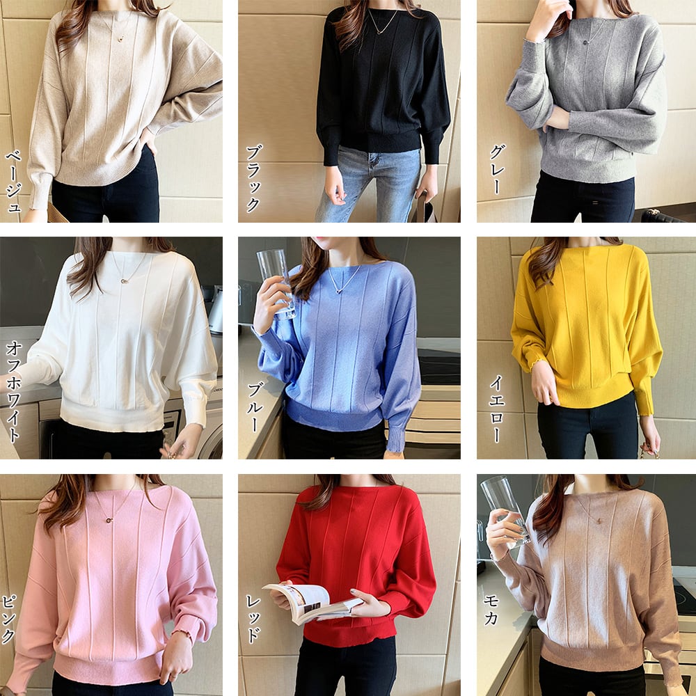 ドルマンニット レディース ボートネックリブニット 薄手プルオーバー 柔らかい ニットソーベーシック無地女子会カジュアル