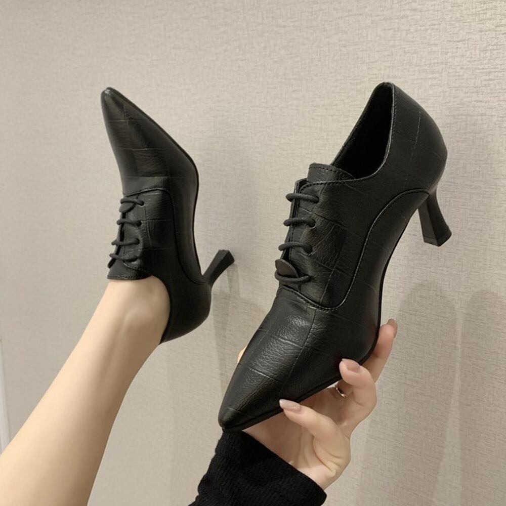 裏起毛 オックスフォードシューズ レディース ルイヒール ポインテッドトゥ ブーツ レースアップ 歩きやすい 靴 美脚ブーティ 痛くない ショートブーツ 黒 婦人靴 履きやすいトラディショナルな雰囲気を醸し出すマニッシュオックスフォード靴のDesignに特徴的なルイヒール、バックスタイルだって抜け目なしのアンクルブーツシックでオーソドックスなスムース仕様、さりげないクロコダイル調模様型押し仕様、落ち着きのあるマットなスエード調仕様をご用意、シーンとスタイルに合わせて選べやすい内側が裏起毛素材なので肌当たりが良く暖かいのが嬉しいポイント太めのヒールなので、歩く時のぐらつきなどもなく安定した履き心地を実現、パンプス感覚で気軽に履ける1足で学生にもOLにもおすすめABタイプ甲素材:合成皮革Cタイプ甲素材:合成皮革+合成繊維底素材:合成底カラー:ブラックタイプ:A(クロコ)/B(スムース)/C(スエード調)サイズ:22.5cm(225)/23.0cm(230)/23.5cm(235)/24.0cm(240)/24.5cm(245)(カッコ内は靴底表記となります)[22.5]長さ:約22.5cm 幅:約6.6cm ヒール:約6.5cm[23.0]長さ:約23.0cm 幅:約6.8cm ヒール:約6.5cm[23.5]長さ:約23.5cm 幅:約7.0cm ヒール:約6.5cm[24.0]長さ:約24.0cm 幅:約7.2cm ヒール:約6.5cm[24.5]長さ:約24.5cm 幅:約7.4cm ヒール:約6.5cm重さ(両足):約483g-497g生産国:中国※すべて平置きサイズです(採寸方法違いより、多少の誤差がございますので、ご了承ください)。