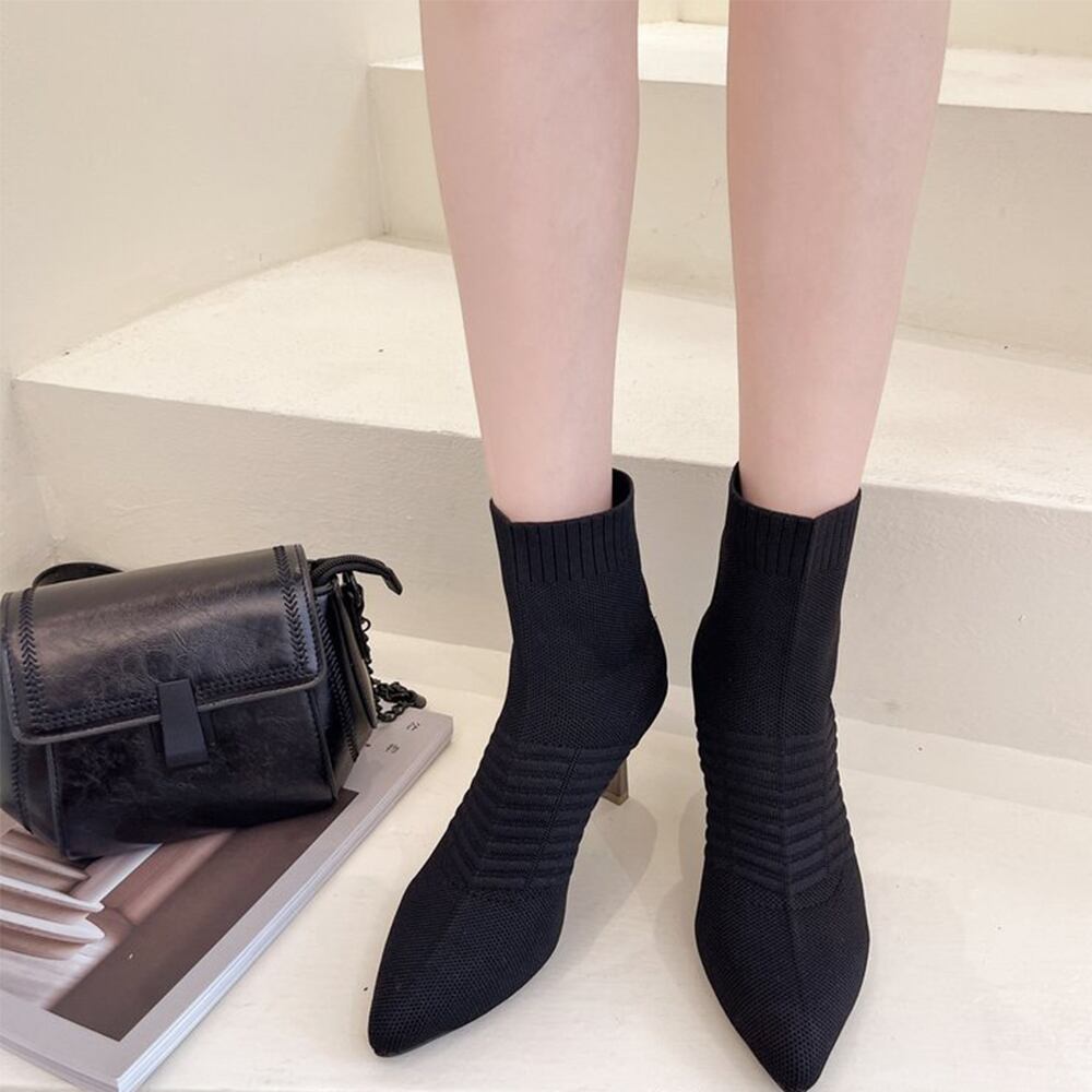 レディース ショートブーツ ピンヒール 韓国 ブーティ ハイヒール ニットブーツ 歩きやすい 秋冬靴 カジュアルおしゃれ ブーツ 大人 美脚ブーティ シンプル 無地 靴しなやかな履き心地で程よくフィットしてくれるニットソックスブーツポインテッドトゥが女性らしい印象を与えてくれるショート丈だから、足首がきゅっと締まって足細に見え、履くだけできれいな美脚になれる甲素材:合成繊維底素材:合成底カラー:ブラック/ライトベージュサイズ:22.5cm(225(1.5))/23.0cm(230(1.5))/23.5cm(235(1.5))/24.0cm(240(1.5))/24.5cm(245(1.5))(カッコ内は靴底表記となります)[22.5]長さ:約22.5cm 幅:約6.7cm 筒丈:約11.5cm 履き口周り:約20cm[23.0]長さ:約23.0cm 幅:約6.8cm 筒丈:約12.0cm 履き口周り:約21cm[23.5]長さ:約23.5cm 幅:約6.9cm 筒丈:約12.5cm 履き口周り:約22cm[24.0]長さ:約24.0cm 幅:約7.0cm 筒丈:約13.0cm 履き口周り:約23cm[24.5]長さ:約24.5cm 幅:約7.1cm 筒丈:約13.5cm 履き口周り:約24cmヒール(全サイズ):約7.5cm重さ(両足):約481g-544g生産国:中国※すべて平置きサイズです(採寸方法違いより、多少の誤差がございますので、ご了承ください)。