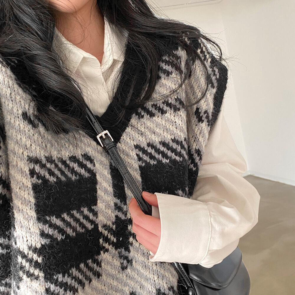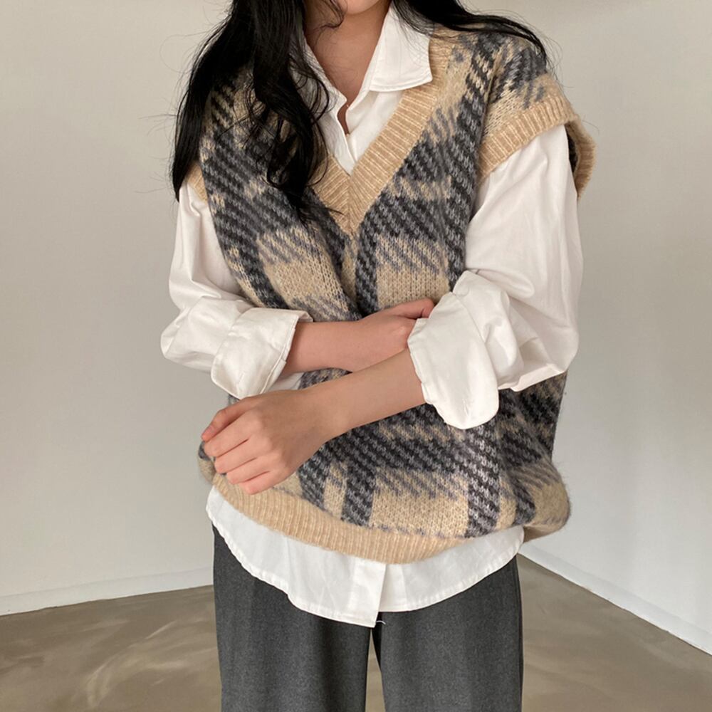 韓国風 チェック柄ベスト ショート丈 ノースリーブ ニットトップス レイヤードベスト Vネック レトロ 20代 30代重ね着ニット秋冬 ベスト お洒落 カジュアルジレ旬のレイヤードスタイルに欠かせないニットベストレトロ感たっぷりのチェック柄でとても上品なお洒落感を作り出すニットベストはロンTやシャツ、ブラウスとのレイヤードはもちろんワンピースとのレイヤードもオススメ素材:ポリエステル75%+アクリル25%カラー:ブラック/ベージュサイズ:ワンサイズ着丈:約62cm 肩幅:約51cm 身幅:約52cm 胸囲:約104-135cm裏地:なし伸縮性:あり透け感:なし生産国:中国※すべて平置きサイズです(採寸方法違いより、多少の誤差がございますので、ご了承ください)。