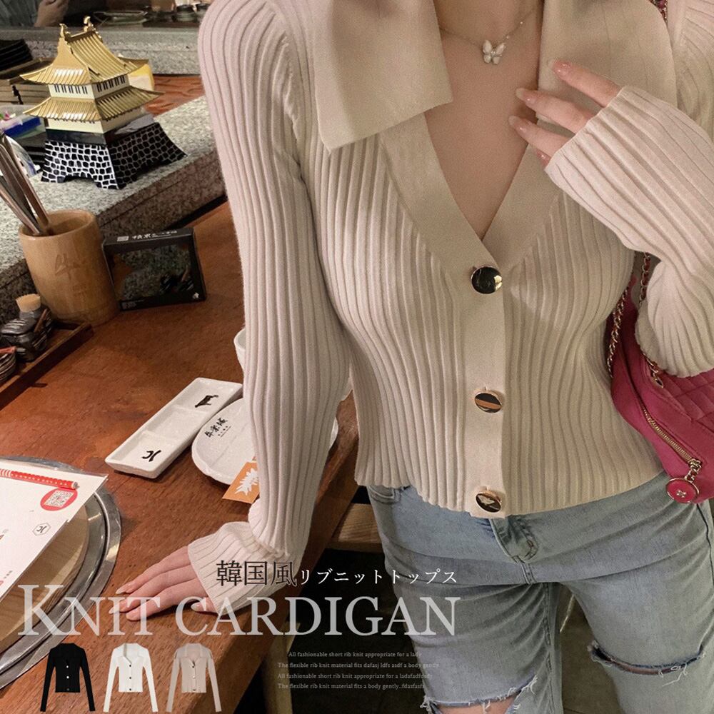 ニットカーディガン Vネック 長袖 2way ニットトップス 前開き 秋服 着やせ ショート丈 羽織り 無地 ニットアウター 通勤大人コーデセクシー オフィスカジュアル きれいめシルエット女性らしいお洒落なショート丈リブニットトップス。