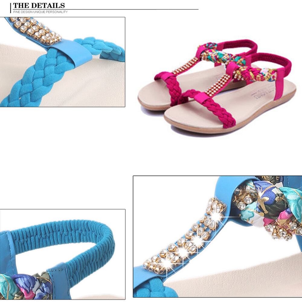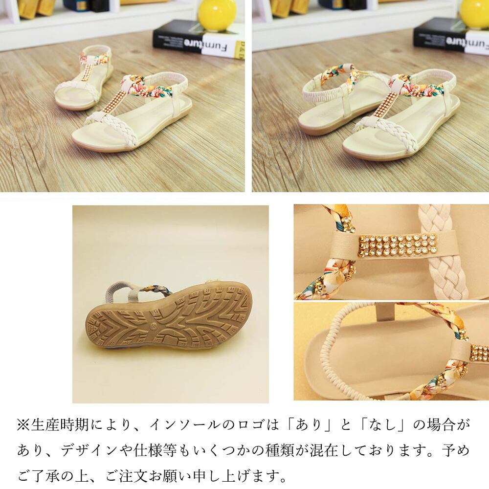 フラットサンダル レディース 歩きやすい 靴 夏 サマーサンダル ラインストーン ボヘミアン スリッパ ペッタンコ疲れない サンダル 海リゾートサンダル 南国風 サンダル異素材編み込みストラップにラインストーン、華奢に魅せて女性らしいボヘミアン風サンダルフラットヒールが軽くて疲れにくい、インソール部分も足にフィットして長時間歩いても快適普段履きはもちろん、ショッピングや旅行、ビーチまたはリゾートにも最適甲素材:合成繊維底素材:合成底カラー:ブラック/ベージュ/ホットピンク/ブルーサイズ:23.0cm(36)/23.5cm(37)/24.0cm(38)/24.5cm(39)/25.0cm(40)(カッコ内は靴底表記となります)[23.0]長さ:約23.0cm 幅:約12.7cm ヒール:約2.5cm[23.5]長さ:約23.5cm 幅:約12.7cm ヒール:約2.5cm[24.0]長さ:約24.0cm 幅:約12.8cm ヒール:約2.5cm[24.5]長さ:約24.5cm 幅:約13cm ヒール:約2.5cm[25.0]長さ:約25.0cm 幅:約13cm ヒール:約2.5cm重さ(両足):約266g-294g生産国:中国※すべて平置きサイズです(採寸方法違いより、多少の誤差がございますので、ご了承ください)。