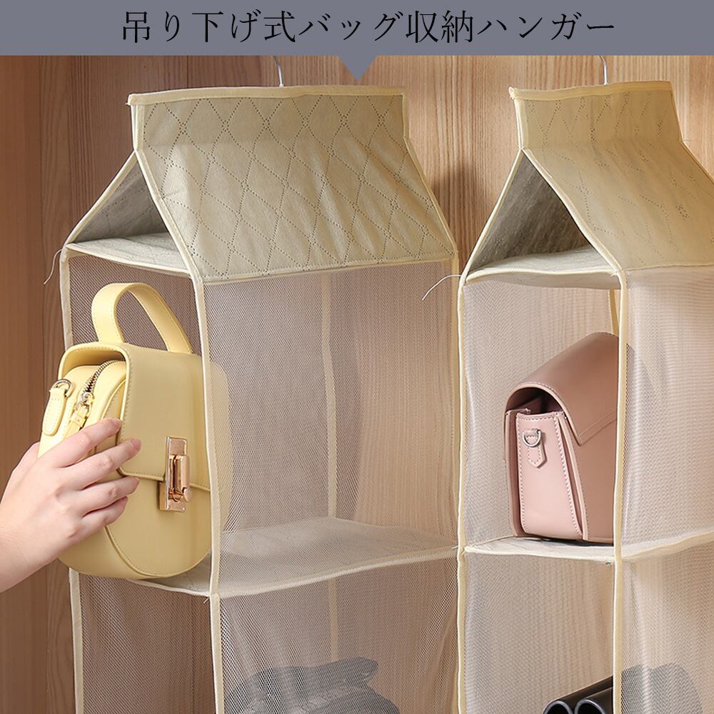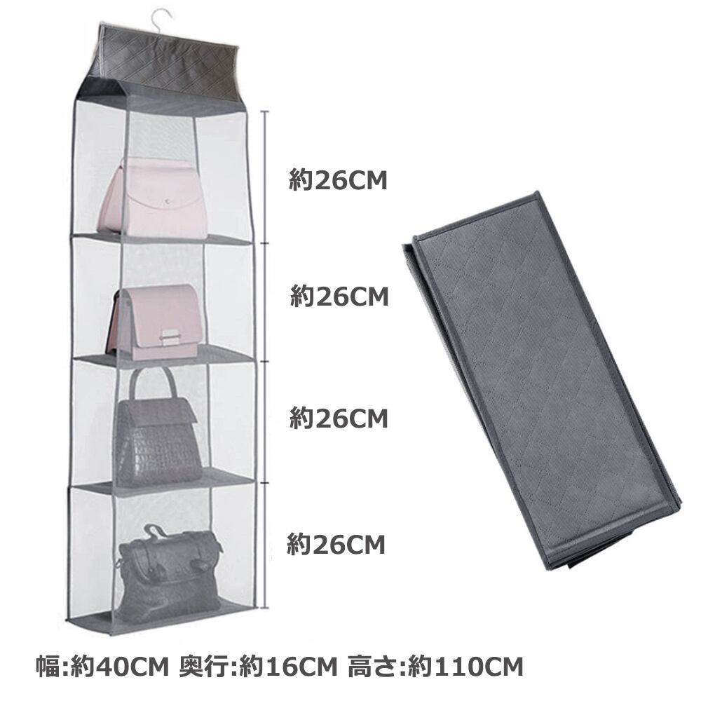 カバン収納 4段式 フック付き 省スペース 型崩れ防止 収納ホルダー 整理整頓 立体 ウォールポケット 壁掛けお片付けカバン収納 無地 中身可視 防塵 クローゼット吊り下げ式なので、クローゼットなどのスペースを有効活用し、多層収納できるバッグ収納ハンガーかばんの型崩れ防止!