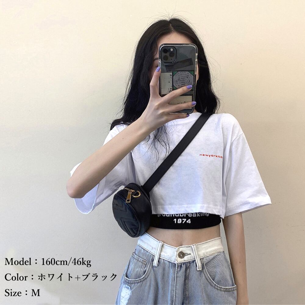 2点セット トップス 春夏 ショート丈tシャツ 半袖 セットアップ レディース カジュアル アンサンブル セクシープリントtシャツ クロップドtシャツ ヒップホップ 衣装英字柄&短め丈感のゆったりめtシャツとタイトタンクトップの2点セットモノトーンなので露出度が高くてもヘルシーな肌見せになり、デニムパンツと合わせるだけでスタイリッシュなオルチャンカジュアルコーデが完成セットとして着てはもちろん、別々でも着られるのでとてもお買い得Tシャツ素材:ポリエステル70%+綿30%タンクトップ素材:ポリエステル70%+綿30%カラー:ホワイト+ブラックサイズ:M/L/XLTシャツ:[M]着丈:約32cm 肩幅:約44cm 袖丈:約20cm ゆき:約42cm 身幅:約49cm 胸囲:約98cm[L]着丈:約35cm 肩幅:約45cm 袖丈:約21cm ゆき:約43.5cm 身幅:約51cm 胸囲:約102cm[XL]着丈:約37cm 肩幅:約46cm 袖丈:約22cm ゆき:約45cm 身幅:約53cm 胸囲:約106cmタンクトップ:[M]着丈:約40cm 身幅:約36cm 胸囲:約72cm[L]着丈:約43cm 身幅:約39cm 胸囲:78cm[XL]着丈:約46cm 身幅:約41cm 胸囲:約82cm裏地:なし伸縮性:若干あり透け感:Tシャツのみややあり生産国:中国※すべて平置きサイズです(採寸方法違いより、多少の誤差がございますので、ご了承ください)。